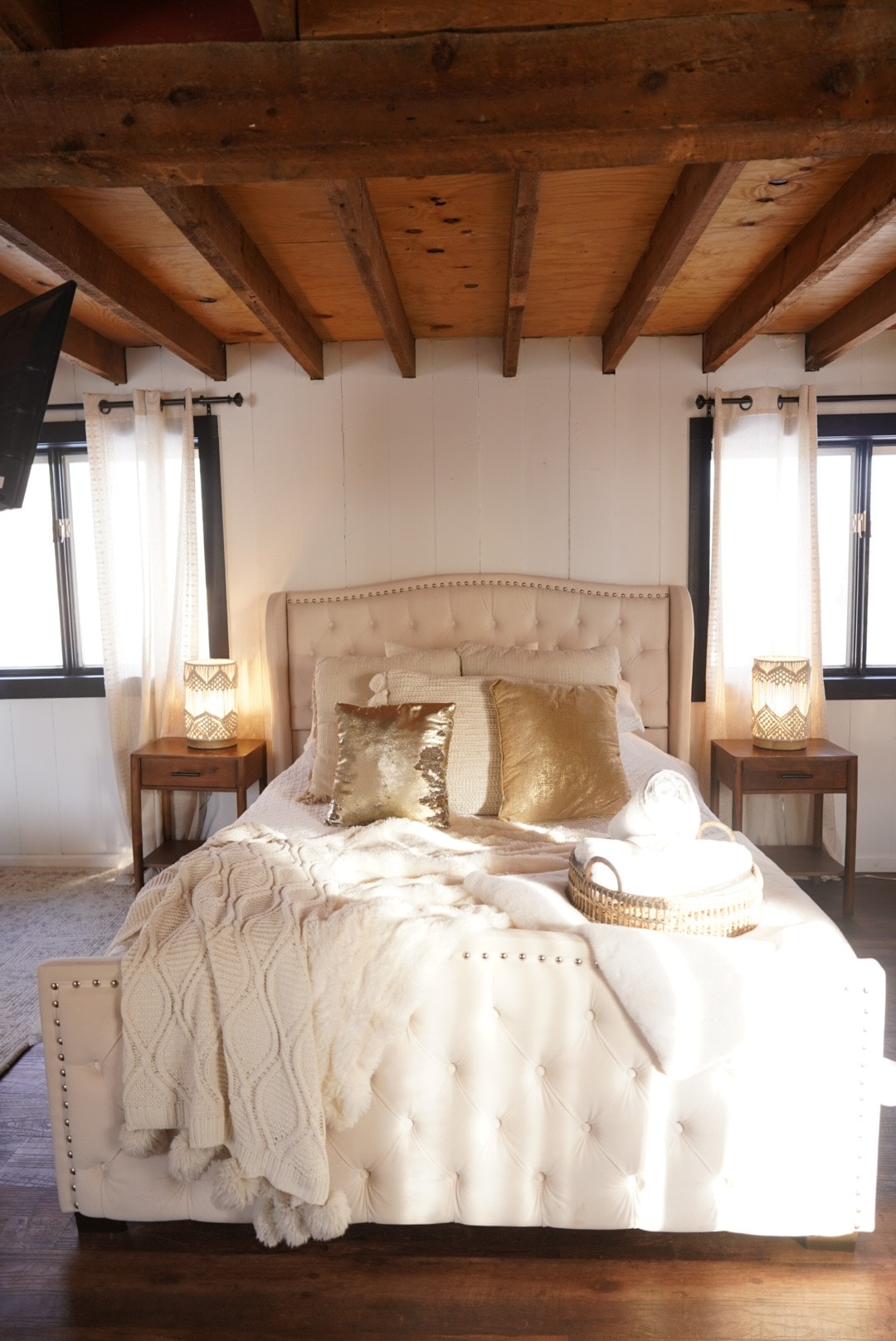 We finished building this modern Scandinavian cabin in spring 2020. It’s been featured in Vogue and on Magnolia Network. The cabin sits at the end of the road on a private lot with a perfect view of sunsets over the nature side of the lake. Drive past farm fields, into the woods, and onto our private gravel road, arriving at the driveway. Watch loons, tundra swans, eagles, beavers and deer while you relax by the lake. Pontoon boat rental is available as an add on! Pets welcome for a $90 fee!