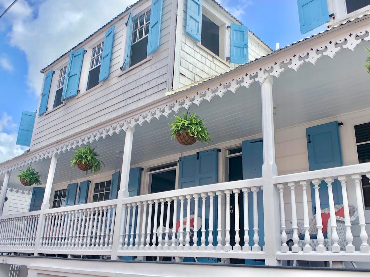 The Bonney, a gated historical Danish villa, rests in the heart of downtown Christiansted! Just 0.2 miles from the Christiansted Boardwalk and walking distance to the ferry, seaplane, shops, bars & restaurants, waterfront, national parks and historic sites. This beautiful 1-bed, 1-bath suite provides AC, WiFi, smart TVs, and a fully equipped kitchen. Access to snorkel gear, beach chairs, umbrellas, coolers, and all your beach needs! Enjoy everything St Croix has to offer in comfort and safety!