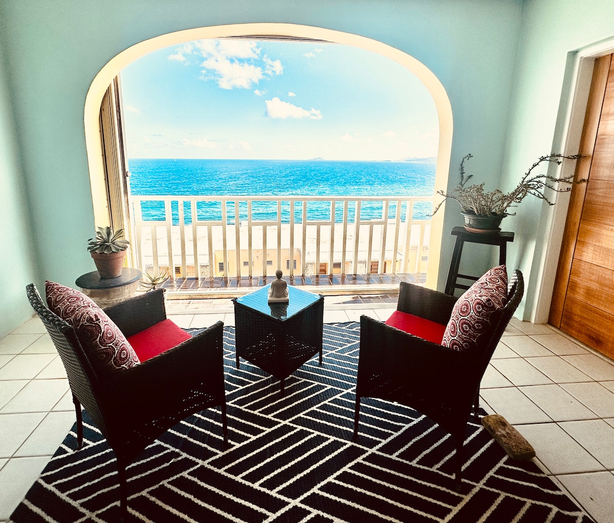 One of the best places on St Croix! You are steps from our beach, pool and hot tub, with amazing views from inside and our balcony. Everything is new with luxury finishes! Gorgeous kitchen with quartz counters and new appliances. You get a beautiful bathroom, an amazing bedroom with a new bed, the 55" TV with 50 DVDs and those amazing views! Centrally located to enjoy Buck Island, Hotel on the Cay, Cane Bay beach and Rainbow beach, restaurants, and more. You will love it!