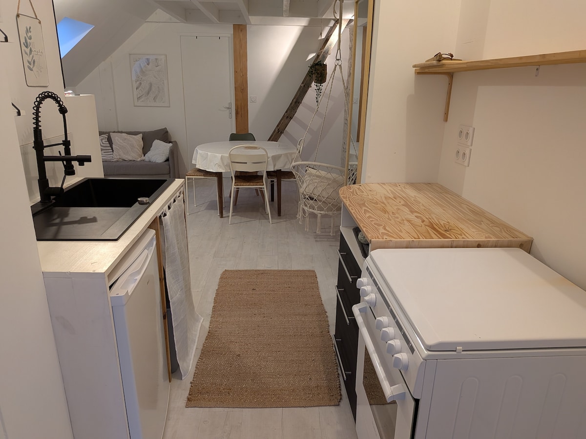 Situé dans un jardin clos le logement est indépendant du domicile des propriétaires. Il est petit : 14 m2 . Malgré la proximité du centre ville le lieu est calme. Pour des courts séjours la maisonnette est idéale. L'aménagement est simple, fonctionnel et chaleureux. Une seule personne est acceptée dans ce logement. Notre hôte doit porter des chaussons. Suite à des expériences désagréables des frais de ménage (25€) seront demandés si le logement n'est pas rendu propre.