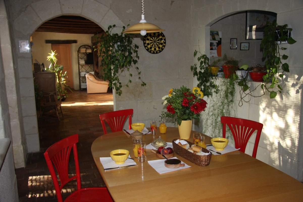 En plein centre de la Vallée de la Loire, la maison d’hôtes « Gué Chapelle », construite au début du XVIIIème siècle sera le point de départ idéal pour visiter et découvrir la région, son patrimoine ou tout simplement se mettre au vert. Ce logement est privatisable dans son ensemble pour des groupes d'au moins 8 personnes. Sinon, il vous sera proposé des chambres privatives: chambres Richelieu, Villandry et Louis-Désiré.