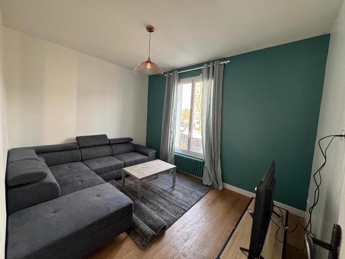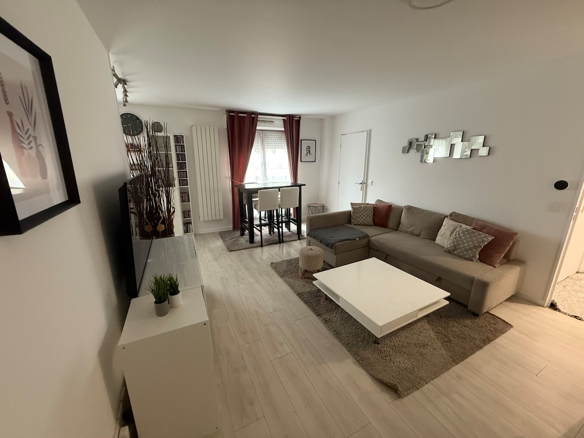 🌟Appartement idéalement situé aux portes de Paris 🌟 •Wifi gratuit / Fibre •TV HD ( bouquet de 230 chaines) / NETFLIX inclus •Machine à café L'OR Barista (café et thé offerts) •Cuisine équipée •Serviettes et draps fournis Poussez la porte de cet appartement apaisant à la décoration chaleureuse et relaxante 🍃, vous apprécierez son emplacement aux portes de la capitale. Idéalement situé, vous aurez l’embarras du choix pour vos déplacements qu'ils soient culturels, sportifs ou professionnels.