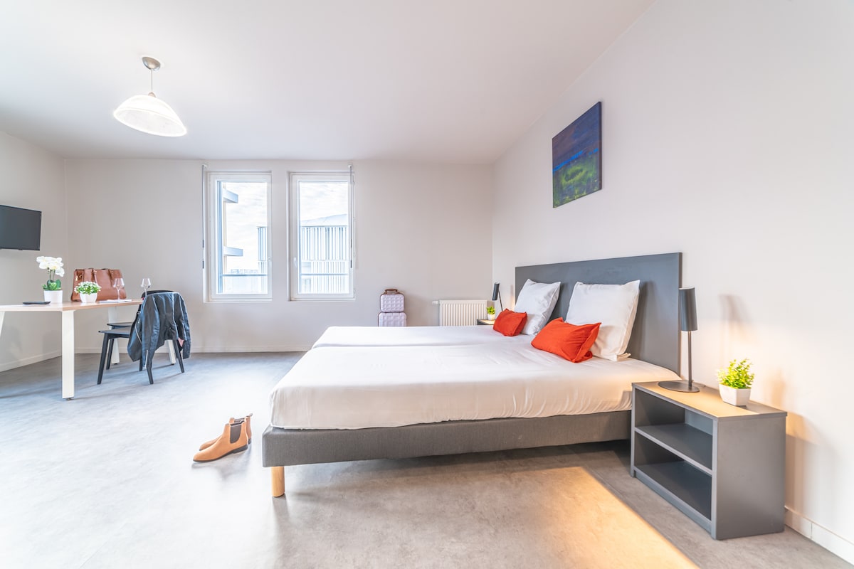 The Studio offers a warm and functional space, perfect for a solo or duo stay. With a surface area of 24 m², this bright and cozy apartment features a king-size bed (180 x 200 cm) or two single beds on request, a bathroom with a shower designed as a true wellness retreat, complete with toiletries, bathrobes, and slippers, as well as a fully equipped kitchenette. Designed to combine comfort and practicality, the Studio is ideal for enjoying a Parisian getaway while feeling right at home.