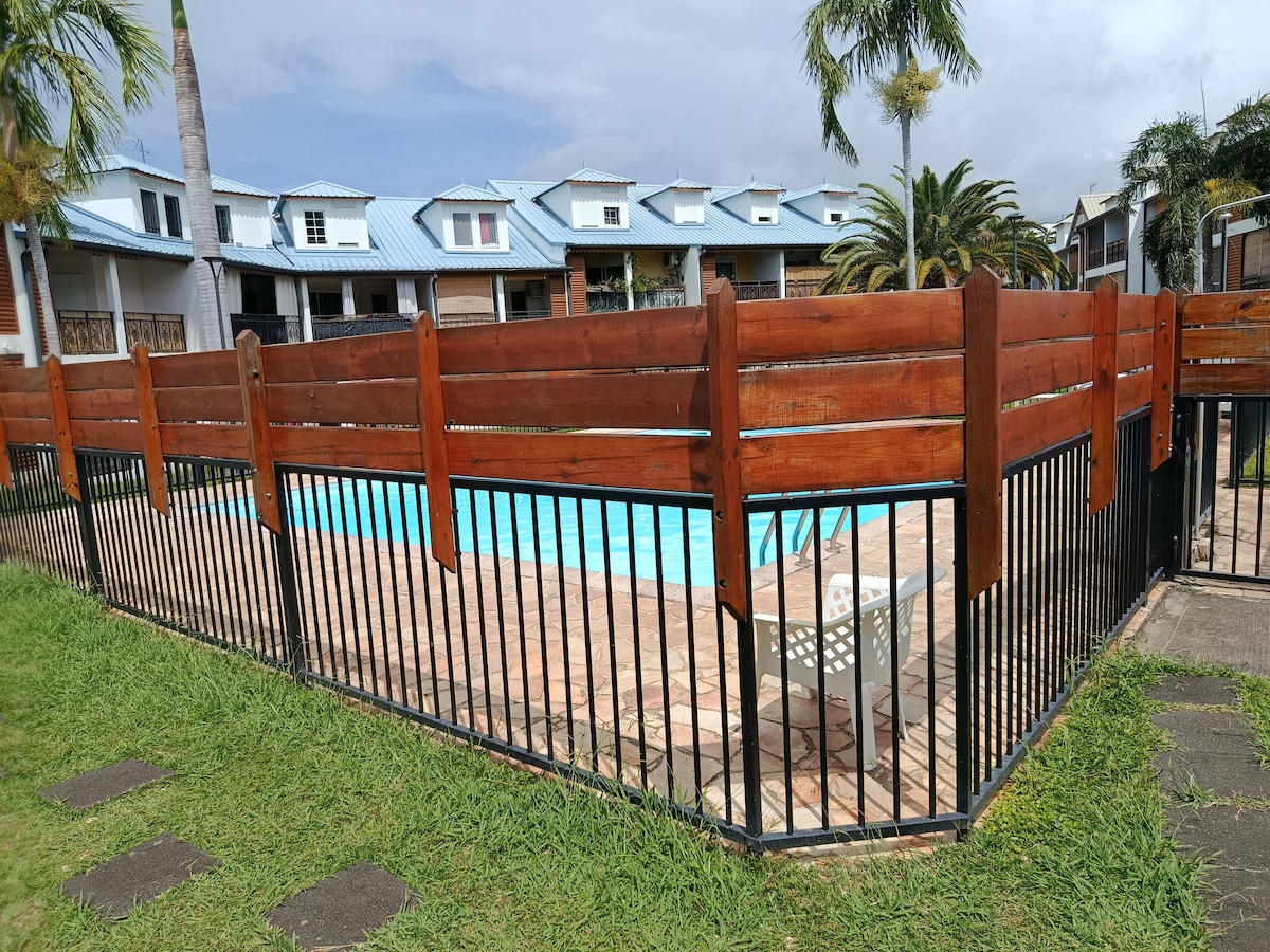La Ti kaz Dakoté, classée 3* est une mini maison indépendante, située à 10mn de l'aéroport avec parking et piscine privée. Munie d'une varangue avec salon et salle à manger. À l'intérieur, un salon TV, une cuisine aménagée et une chambre en mezzanine. Atypique, la salle de bain extérieure et couverte est composée d'une grande douche, vasque, WC et d'une baignoire balnéo à ciel ouvert. Les propriétaires, Fabrice et Lucie sont voisins et disponibles en cas de besoin pour votre séjour romantique.