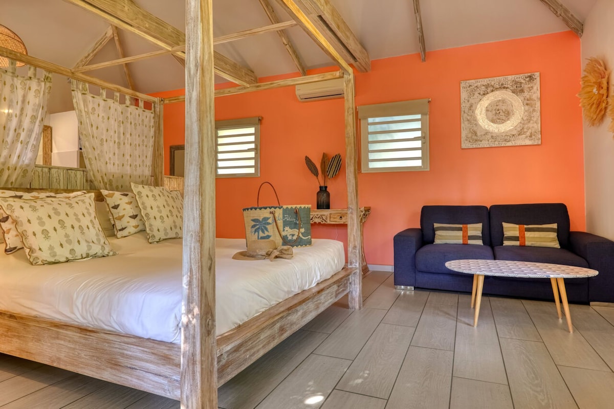 Brand new tropical luxurious bungalow with ethnic decoration - Independent and full contained - With breakfast - Direct access to the swimming pool with private deck and BBQ - Ceiling fan + Climatisation + natural airflow - Large room with king size double bed with direct sea view - Kitchen/verandah concept with open raphia blinds - Amazing semi-open bathroom "balinaise style" with separate and closed toilet - Free WIFI - Tropical garden - Free private parking -