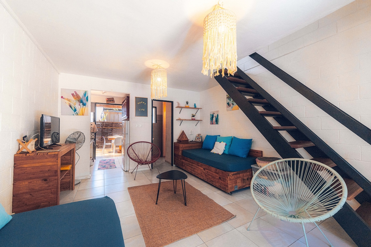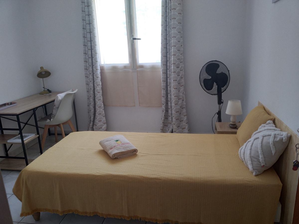Wonderful T2 located in front of the blue Lagoon of Reunion Island. The studio is peaceful and sunny, and includes : - AIR CONDITIONING, - PRIVATE KITCHEN, - INDIVIDUAL TERRACE, - BATHROOM & TOILETS, - SECURED GARAGE and - access to the SWIMMING POOL of the house. As the T2 is attached to the family’ house, since the children left home, my husband and I will be very happy to welcome you.