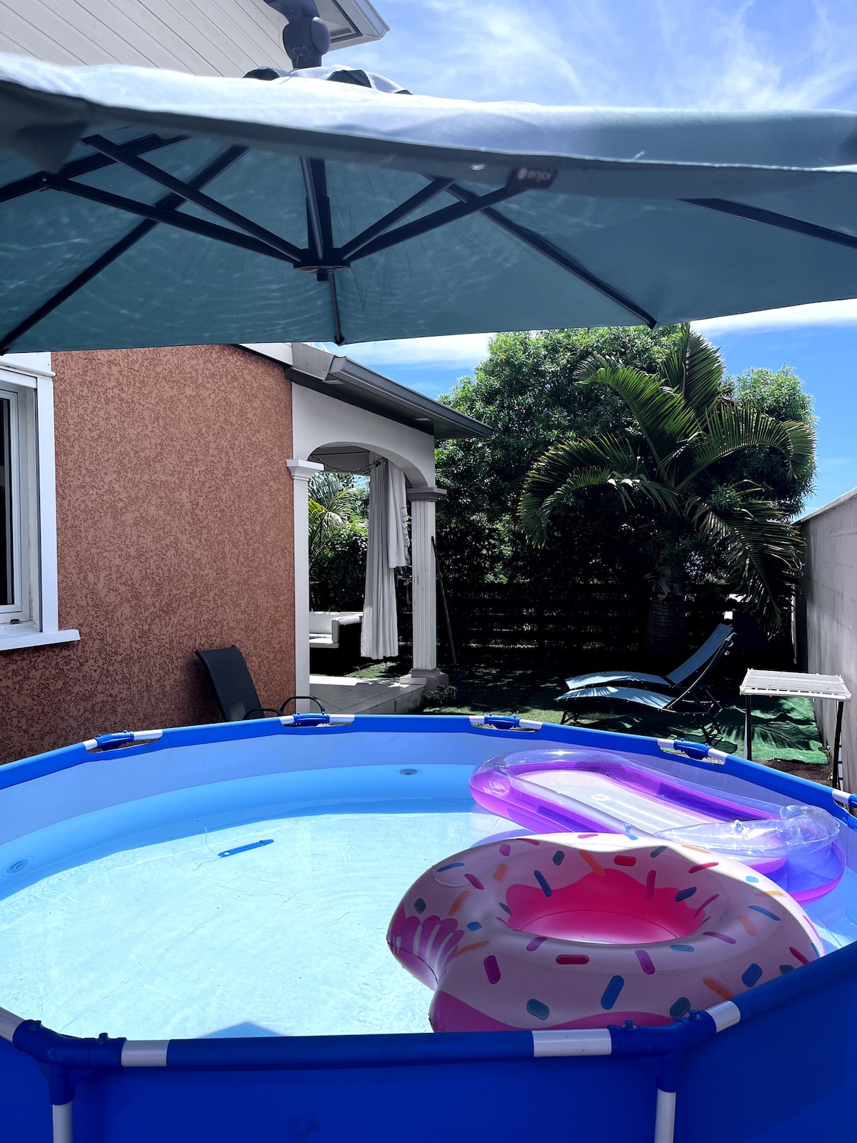 Charmante villa sans vis à vis avec piscine privé au sel 5,90x2,55, capacité : 4 personnes + enfant, 2 chambres climatisées lit 160x200 + brasseurs d’air, 1 cuisine + séjour avec canapé 90x200, 1 terrasse et petit jardin. Située à 1,8 km en voiture du port de plaisance de St Gilles et la plage des roches noires, 2,5km de la plage de l’hermitage. Vous profiterez d’un endroit idéal proche des plages de l’ouest et des axes routiers pour visiter l’île. Un carrefour city, une pharmacie … à pe