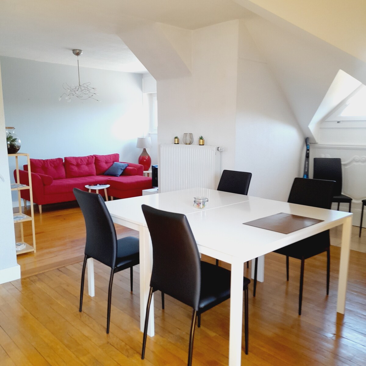 Bel appartement situé en plein centre ville à 5 min de la gare à pied. Au 4ième étage sans ascenseur ce logement parfaitement situé offre un accès facile à toutes les commodités. Un parking payant se trouve au pied de l'immeuble et un gratuit à 300 mètres environ. il se compose d'une cuisine entièrement équipée, d'une salle de bain avec douche, d'une chambre en mezzanine accessible par un escalier en bois et d'une pièce à vivre équipée d'un canapé convertible. arrivée autonome par boîte à clés.
