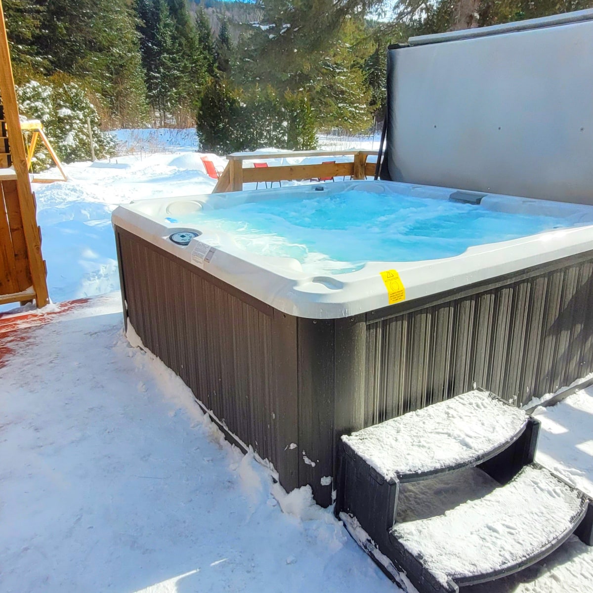 Vivez la magie de l’hiver dans notre Chalet & Spa haut de gamme au cœur de la forêt. Enveloppé de neige et de tranquilité, ce chalet séduit par ses hauts plafonds, sa fenestration spectaculaire et son ambiance chaleureuse. Détendez-vous dans le spa chauffé sous les flocons, près du feu intérieur ou extérieur. Profitez du plancher chauffant, du BBQ hivernal et du wifi haut débit. 3 chambres, 2 salles de bains, 6 lits ultra confortables. À proximité : sentiers, ski, raquettes et lacs gelés.