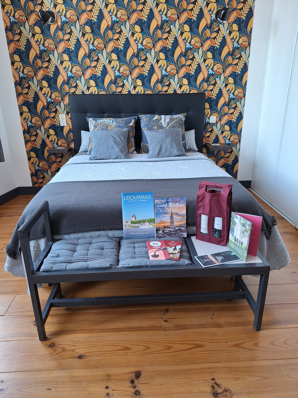 Suite avec entrée et terrasse privée dans maison familiale Espace kitchenette (sans evier) : frigo, microcondes, plaque induction 1 feu, ... Ustensiles de ménage pour les séjours longs : aspirateur + produit entretien Petit déjeuner maison : +10€ / personne (à demander minimum la veille - Vegge / Vegan ok Kidsfriendly 30min Bordeaux, 30 min Saint Emilion, 45 min des lacs, 1h des plages... Châteaux à 500m, forêt à 200m, accrobranche, escalade, chevaux,.... Commerces à 4 km