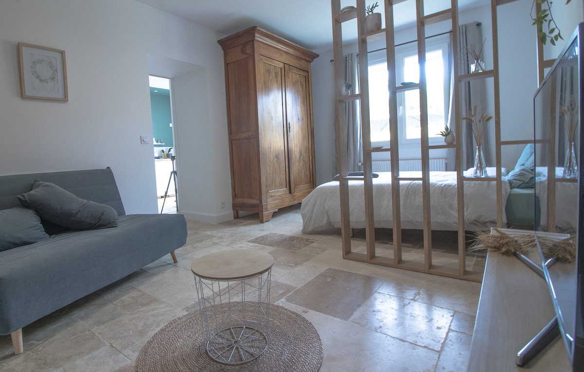 Venez passer un moment reposant au cœur des vignes de Saint Émilion dans un logement authentique et chaleureux. Fraichement rénové, vous pourrez profiter d'un écrin atypique dans une bâtisse centenaire aux pierres de la région et aux poutres apparentes.