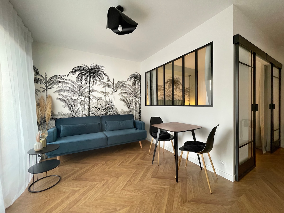 Calme Absolu, Clim & Sommeil "Emma" 5★ Profitez d’un séjour d’exception dans ce 30m² entièrement rénové, niché au 1er étage avec ascenseur. Conçu comme une parenthèse de sérénité au cœur de la Ville Rose, cet appartement lumineux offre un confort rare. Tout se fait à pied. L'hyper-centre est à 15 min, et le métro à seulement 6 min. Nombreux restaurants et commerces de proximité très appréciés des Toulousains : Boulangerie et patisserie fine, fromager, cave à vins et primeur, épiceries.