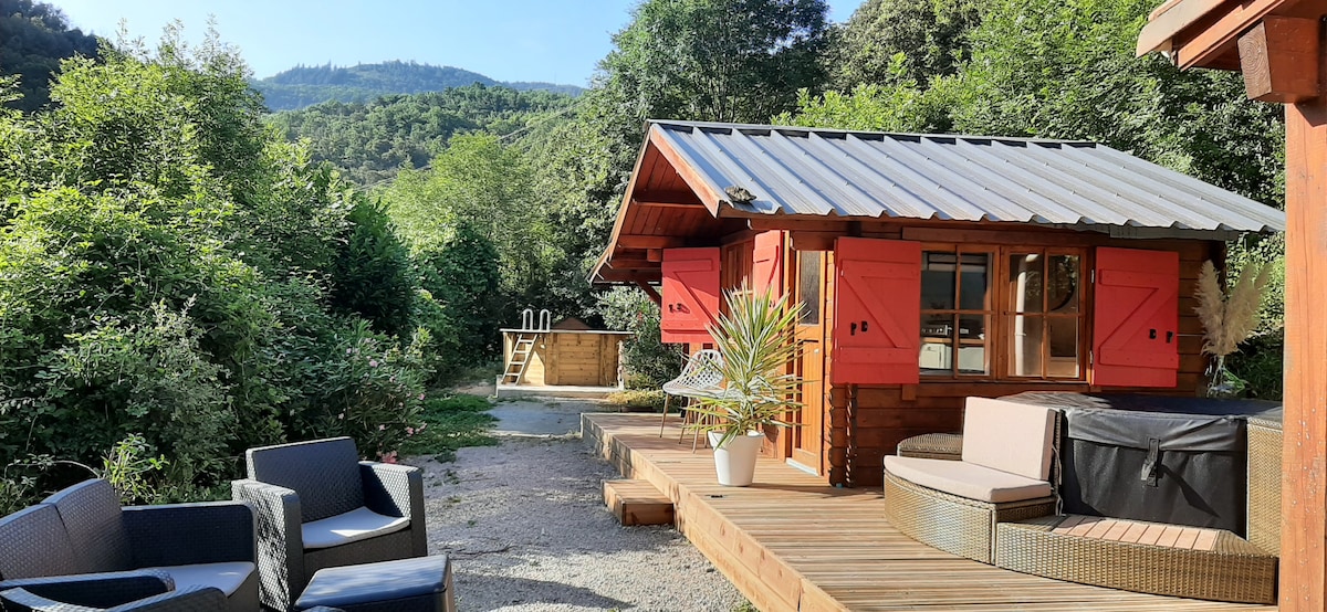 Under our timber-framed house, we rent out a 25m² studio with a private 12m² terrace, a picnic table with a parasol, and an electric plancha. The accommodation was built in 2019. . Enjoy a magnificent view of the valley, the Orb River, and the mountains. Located in the heart of the Haut Languedoc Regional Park, you can experience canyoning, climbing, mountain biking, hiking, and canoeing. Whether by bike or on foot, you can explore the Greenway . Read my guide in the announcement .