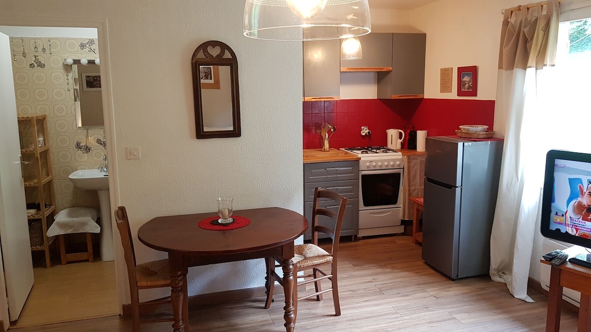 Charmant 2 pièces en plein centre du village, à 5 minutes à pied du télépulsé de la Pinatelle, ouvert été comme hiver (Ski et VTT). Accès au plan d'eau à pied. Place du village à 50m, proche des commerces (proxy, boulangerie, boucherie) Le logement dispose de 4 couchages confortables et d'une salle de bain toute équipée (lave linge). La cuisine est équipée en electroménager, et en vaisselle. Pour votre confort un accès wifi permanent est installé.