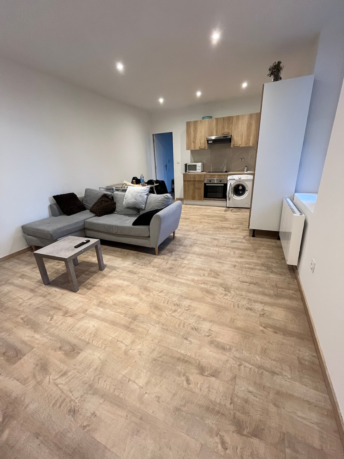 Très bel appartement situé à saint etienne. Entièrement neuf Dispose d’une chambre et cuisine équipée plaque induction micro onde réfrigérateur machine à café thé machine à laver, salle de bain, sèche cheveux connecté fibre Netflix gratuit 250 m du zénith, du fil et du Parc expo, cite du design, restauration salle de sport 100m de la comédie 700 m du stade Geoffroy Guichard Arrêt de bus et de tram à proximité Parking du zénith et stationnement à proximité gratuit immeuble sécurisé