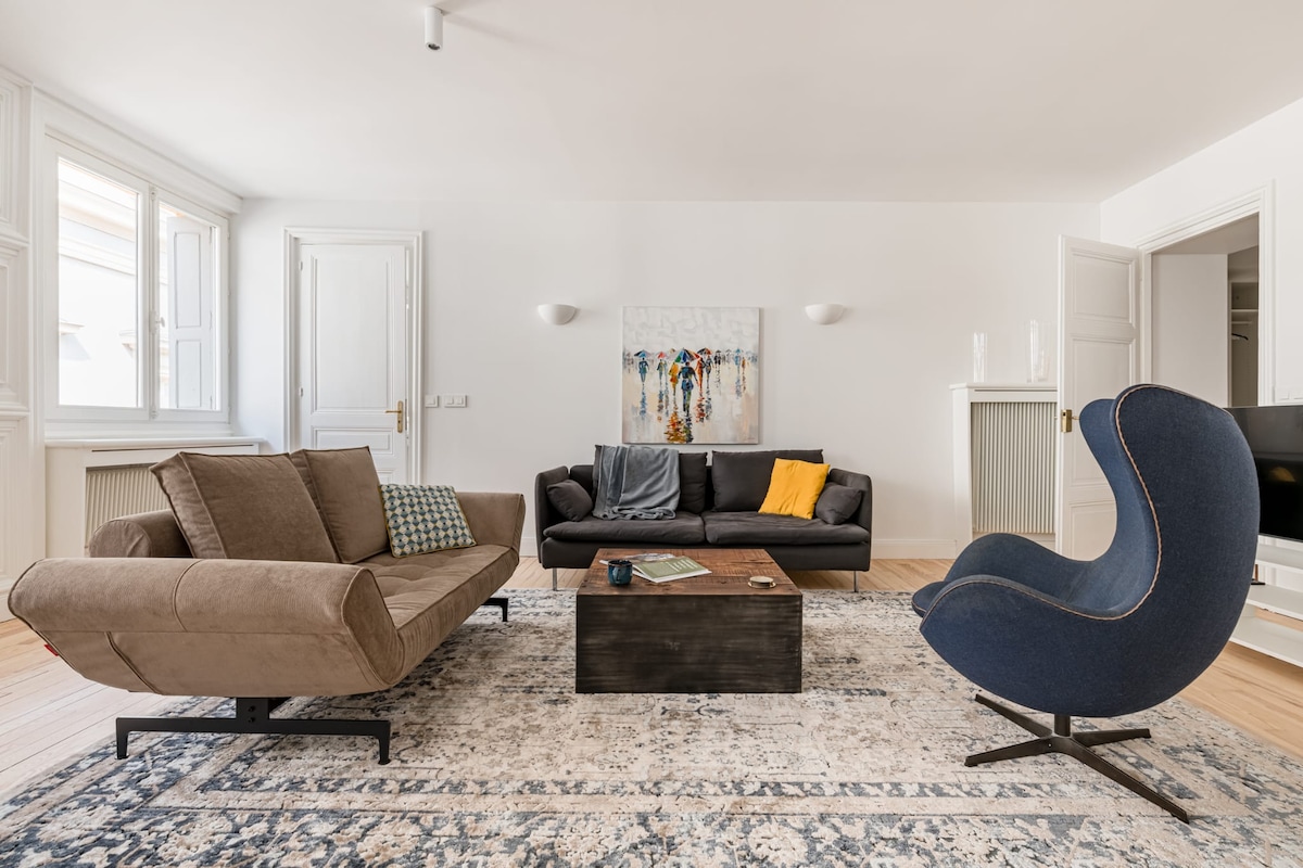 Profitez en hyper centre d'un confort tout en élégance ! Coupé des bruits de la ville ( coté cour - large balcon) avec garage à la même adresse et ascenseur direct, dans un immeuble calme de très bon standing.. Bien chauffé ( en collectif ) . Meublé avec soins et en qualité, la tv est connectée à notre abonnement Netflix.. A 100 mètres de l’Hôtel de Ville et des commodités (Cinémas, Trams - Gare à 15 min à pied). Notre garage disponible sur confirmation à la réservation. Accueil personnalisé.