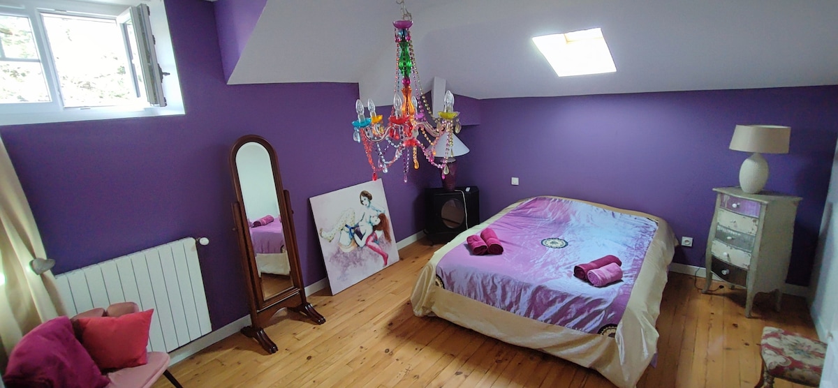 De type Chambre d’hôte, très jolie chambre familiale, ressourçante, confortable et calme avec salle de bain privative, dans une jolie maison de maître, au cœur historique de St Just St Rambert Vous profiterez de notre parc clos et arboré (4000m²), et sur demande de notre cuisine. Les petits déjeuners sont éventuellement possibles avec supplément. Vous ne voudrez plus quitter ce logement charmant et unique.