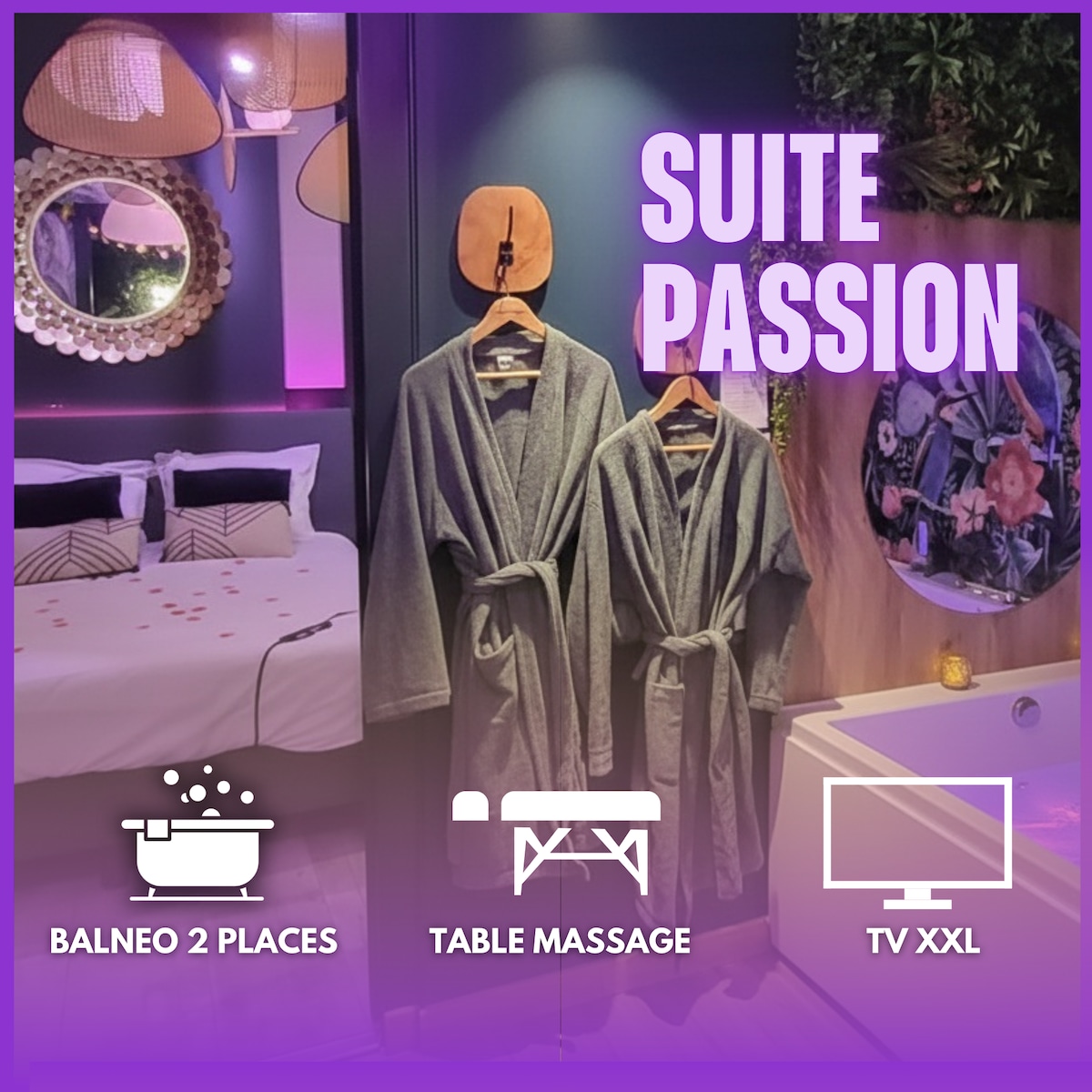 📱Découvrez notre I N S T A G R A M : suite_passion_ ❤️ Bienvenue à la Suite Passion : votre suite romantique haut de gamme située à St Etienne. Escapade romantique, détente absolue et expérience immersive dans ce grand appartement pensée pour les amoureux. Tout a été imaginé pour créer une parenthèse unique : entre confort, sensualité et bien-être, laissez-vous séduire… La Suite, bien plus qu’un Airbnb, c'est une expérience immersive où l'on est certains de passer un moment de bien être