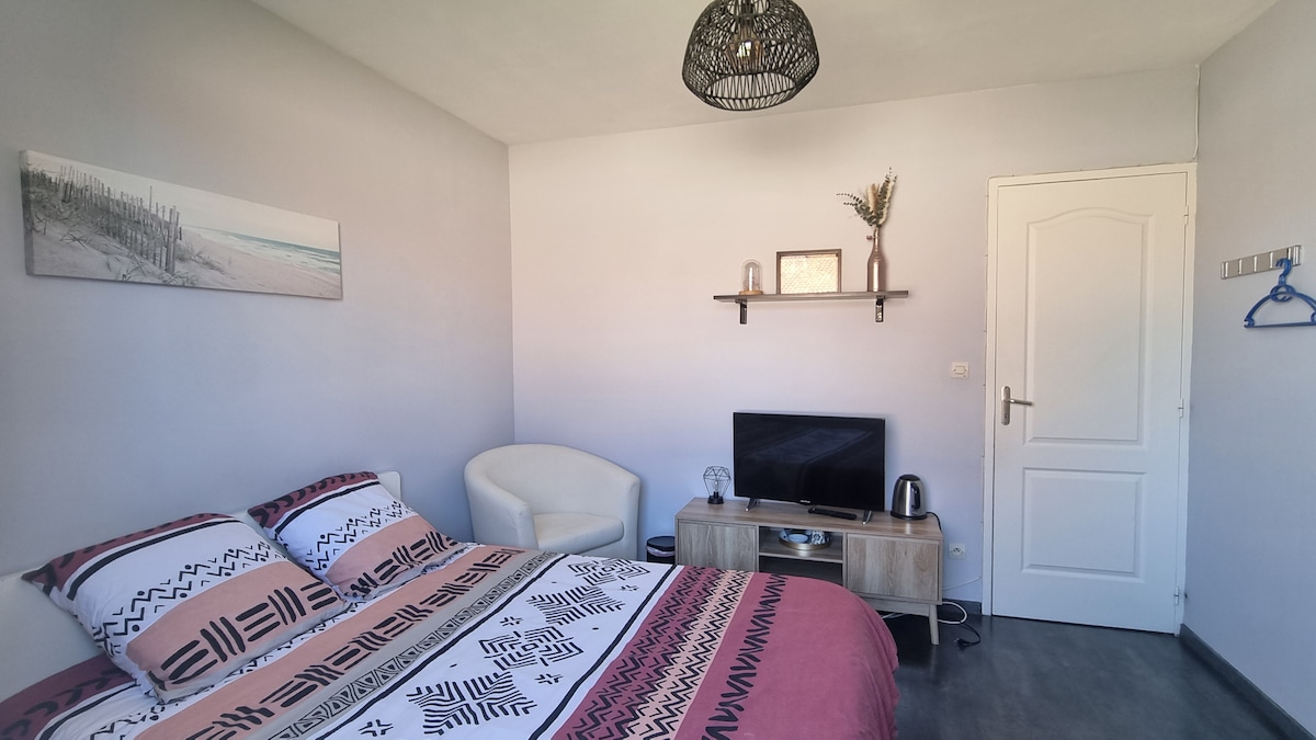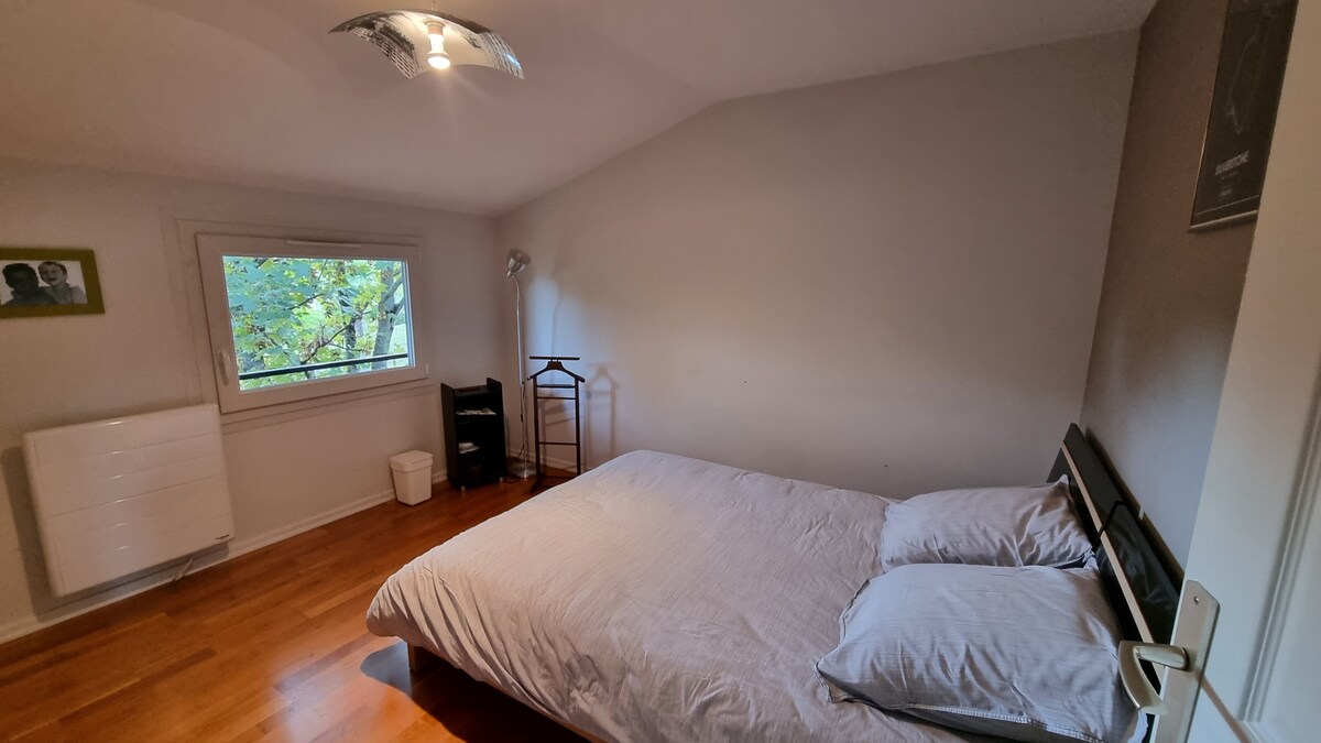 Located in the heart of St-Étienne, near trams and buses, on a quieter side street near the bustling city center, with quick access to Geoffroy-Guichard Stadium, the Cité du Design, museums, and the university Ideal for a vacation, business trip, or weekend getaway, in a cozy and bright space, featuring a fully equipped kitchen, a comfortable living room (sofa bed, TV), a bedroom with a double bed, and a balcony with a view of the rooftops Secure garage, WiFi, linens provided: