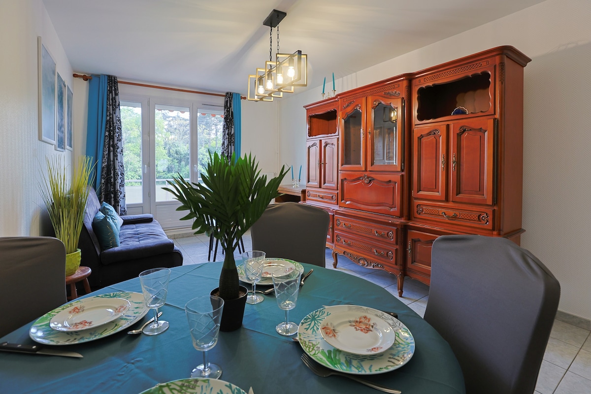 Profitez d’un T3 lumineux et chaleureux avec 2 chambres pouvant accueillir confortablement 4 personnes, 2 balcons et une vue dégagée dans un quartier paisible. Stationnement gratuit, accès sécurisé et interphone relié à notre téléphone pour un accueil simple et pratique. Cuisine équipée, salle de bain avec baignoire. À quelques minutes du Zénith, du Chaudron, de la cité du design et du centre-ville. Idéal pour week-ends, déplacements pros, concerts ou séjours détente à Saint-Étienne.