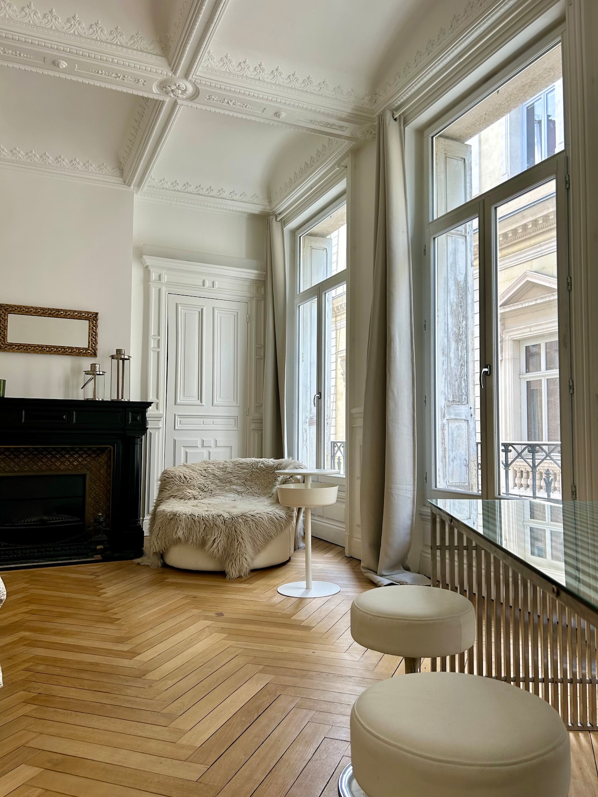 2 grandes chbres lumineuses avec parquet et moulures , un très grand séjour ( avec canapé lit) et 2 sdb idéal pour 2 à 6 personnes. Cuisine équipée indépend, cafetière Nespresso , lave vaisselle… L’appart se situe dans la partie la plus prisée de St Etienne à prox parking, Hôtel de ville ,tram, commerces , restaurants. Accès facile stade, établissements culturels. Stationnements gratuits en août