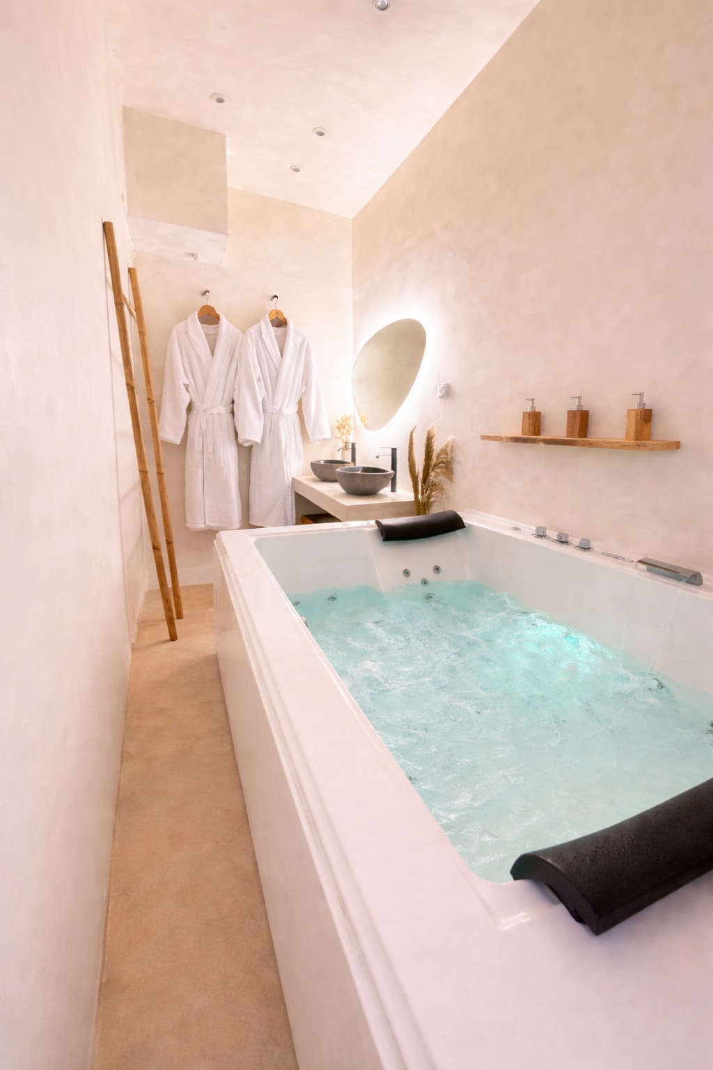 Meey Suite 🌿 Un écrin de luxe et de sérénité pensé pour une expérience d’exception.🌿 Dans une ambiance élégante et apaisante, profitez d’un espace conçu pour le bien-être et la détente. Cette suite vous offre une parenthèse hors du temps, entre confort, intimité et atmosphère chaleureuse. Vous allez apprécier la Balnéo privative. Nous vous invitons dans cet univers unique, pensée pour vous offrir un moment de pure sérénité et vivre un moment inoubliable.