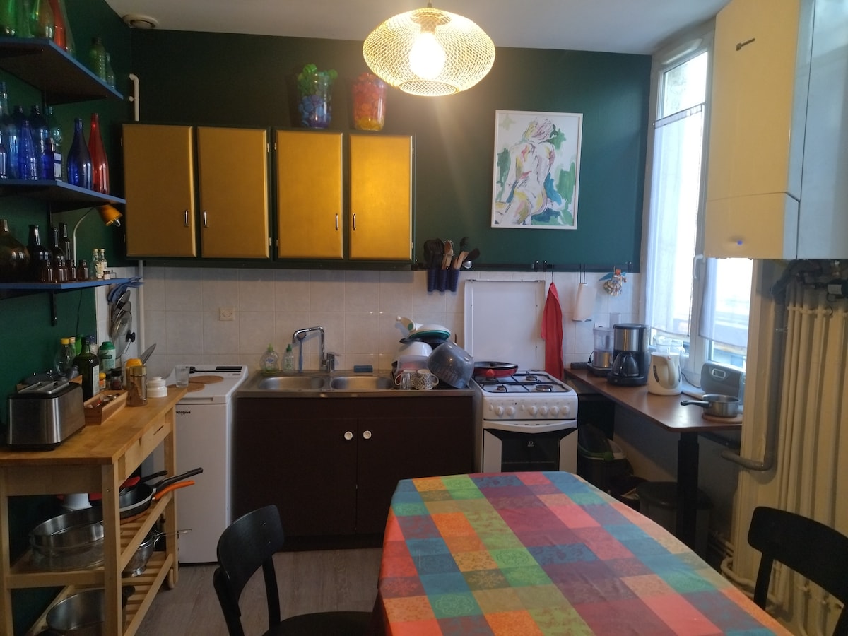 Superbe appart en duplex, idéal groupe - espace ouvert cuisine, salle à manger, salon très lumineux - 4 chambres, dont une sur mezzanine - 1 salle de bain avec douche et baignoire, 1 petit cabinet de toilette, 2 WC - un toit terrasse avec vue dégagée sur la campagne stéphanoise, un balcon Logement jusqu'à 12 pers 11+ 1 matelas au sol Situé dans un quartier calme,proche des axes routiers, transports en communs à 100m. Centre ville et stade facile en tram . Stationnement gratuit dans la rue