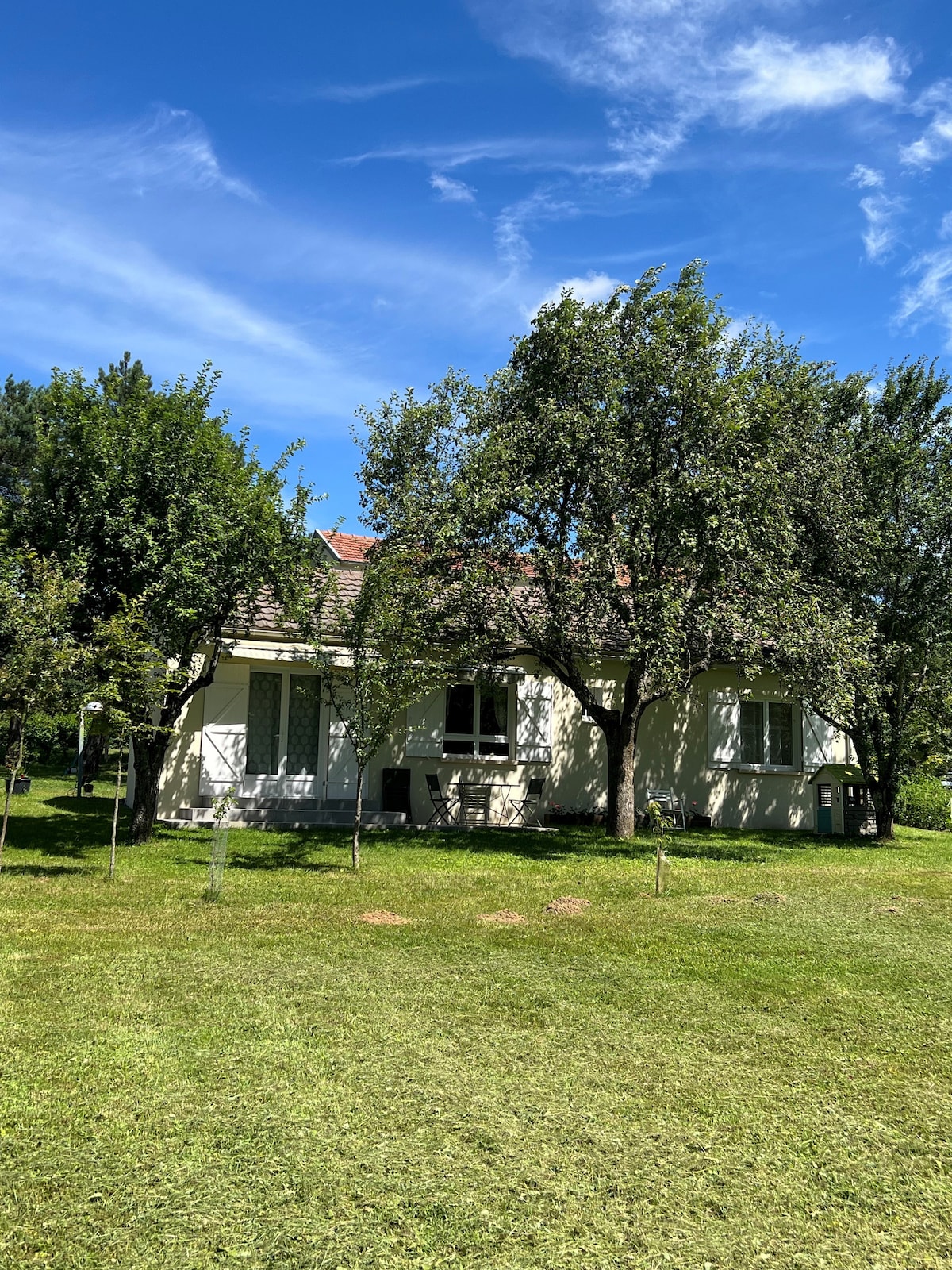 A 1h15 en train de Paris, charmante maison de campagne, grand jardin avec pommier, cerisier. Maison principale : 1 chambre avec lit 2 places, donnant sur une terrasse avec vue. Grand salon : cheminée, table à manger, couchage 1 personne, futon d'appoint. Cuisine, sdb. Accessible de l'extérieur: 1 chambre, lit 2 places. Maisonnette de jardin 2 personnes - uniquement l'été, pas chauffée ni isolée. Barbecue, hamacs, jeux de société, lave-linge, déco rigolote. Draps et serviettes.
