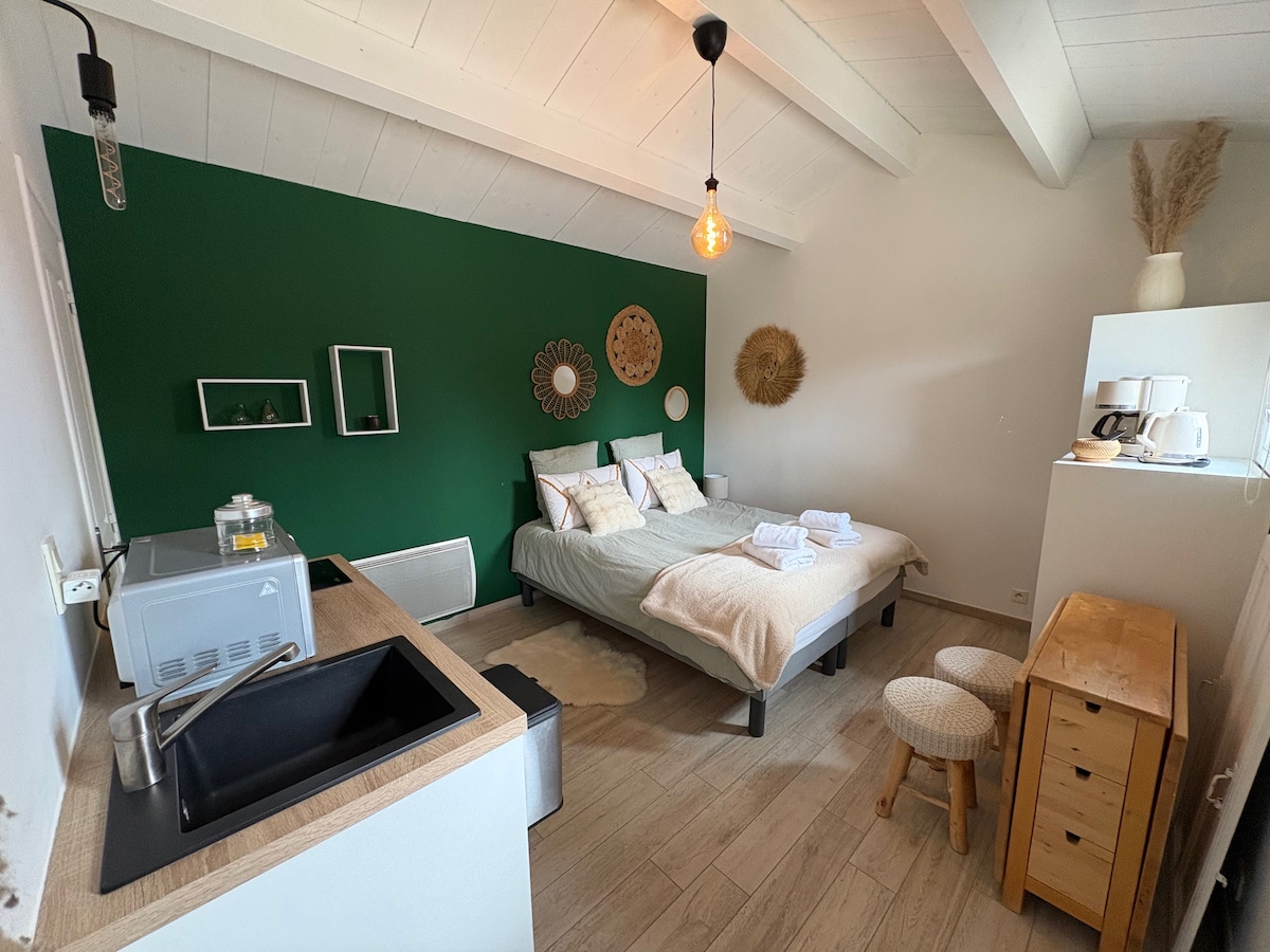 Bienvenue à L’Atelier des Rêves, un refuge paisible au bord d’un étang dans le vignoble nantais, pensé pour se reconnecter à la nature et au temps long. Entièrement rénové dans une démarche écoresponsable, ce logement indépendant de 25 m² accueille deux personnes dans un cadre serein, à 20 min de l’aéroport de Nantes et 45 min des plages. Accessible uniquement en voiture, il garantit calme, intimité et déconnexion, loin du tumulte urbain.