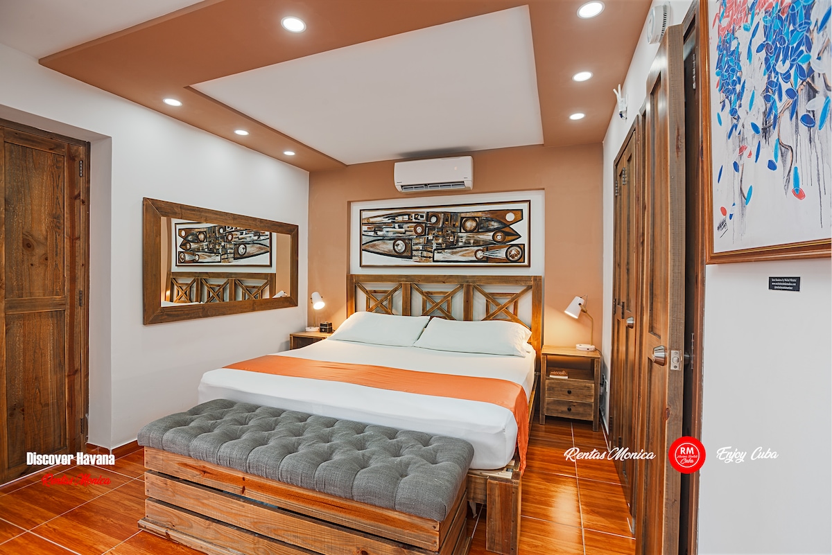 Apartamento ubicado en la Plaza Vieja, una de las plazas más visitada en América, rodeado de Restaurantes, Cafeterías, Museos entre otros lugares. Buena iluminación, konfort, agua fría y caliente, habitación climatizada, cama king size y caja de seguridad. Apartment located in Plaza Vieja, one of the most visited squares in America, surrounded by Restaurants, Cafes, Museums and other places of interest. It has good lighting, konfort, hot and cold water, a heated room, a safe and king size bed.