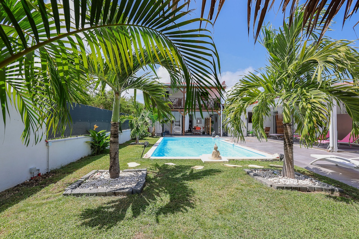 Gîte gwada mango T2泳池,距离海滩150米,有空调
