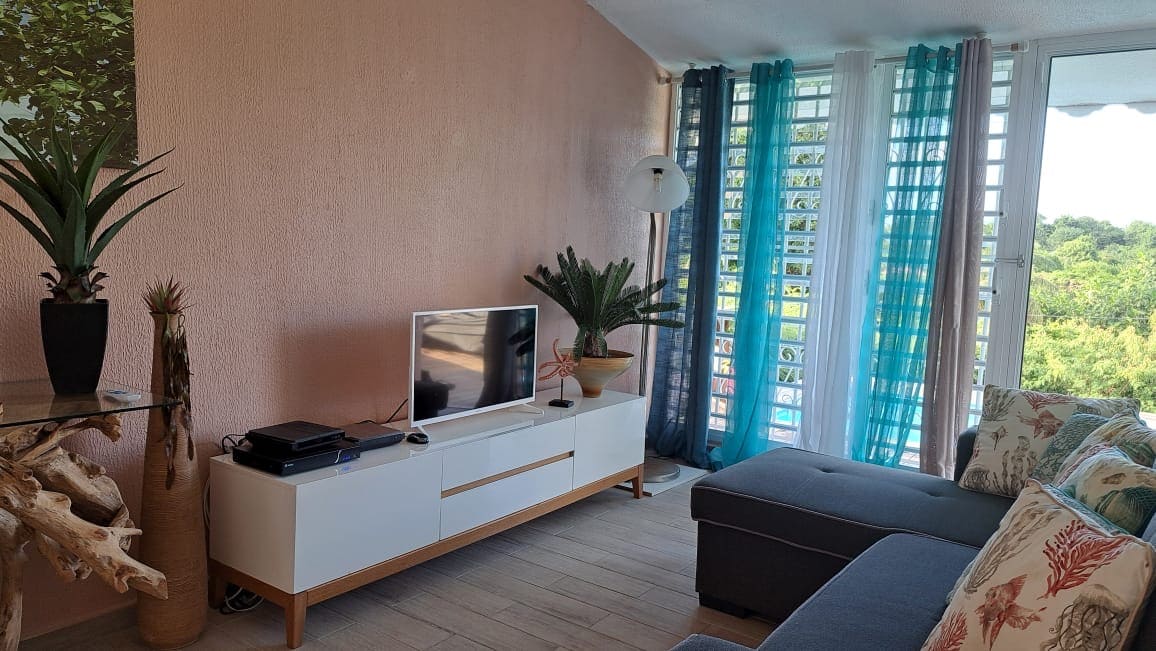 Charme, confort et tranquillité pour cette villa T3, classée 3 étoiles, de 52 m2 à La Coulée, route de La Pointe des Châteaux à St François. Très bien située à proximité de la mer (Anse Mancenillier à 150m), du golf, du centre ville (30mn à pied), commerces, port de pèche, marina, bars, restaurants, départs d'excursions... Ensemble clos, petit jardin tropical, parking privé, wifi et TV d'Orange, chambres climatisées, salon avec brasseur d'air, citerne tampon...