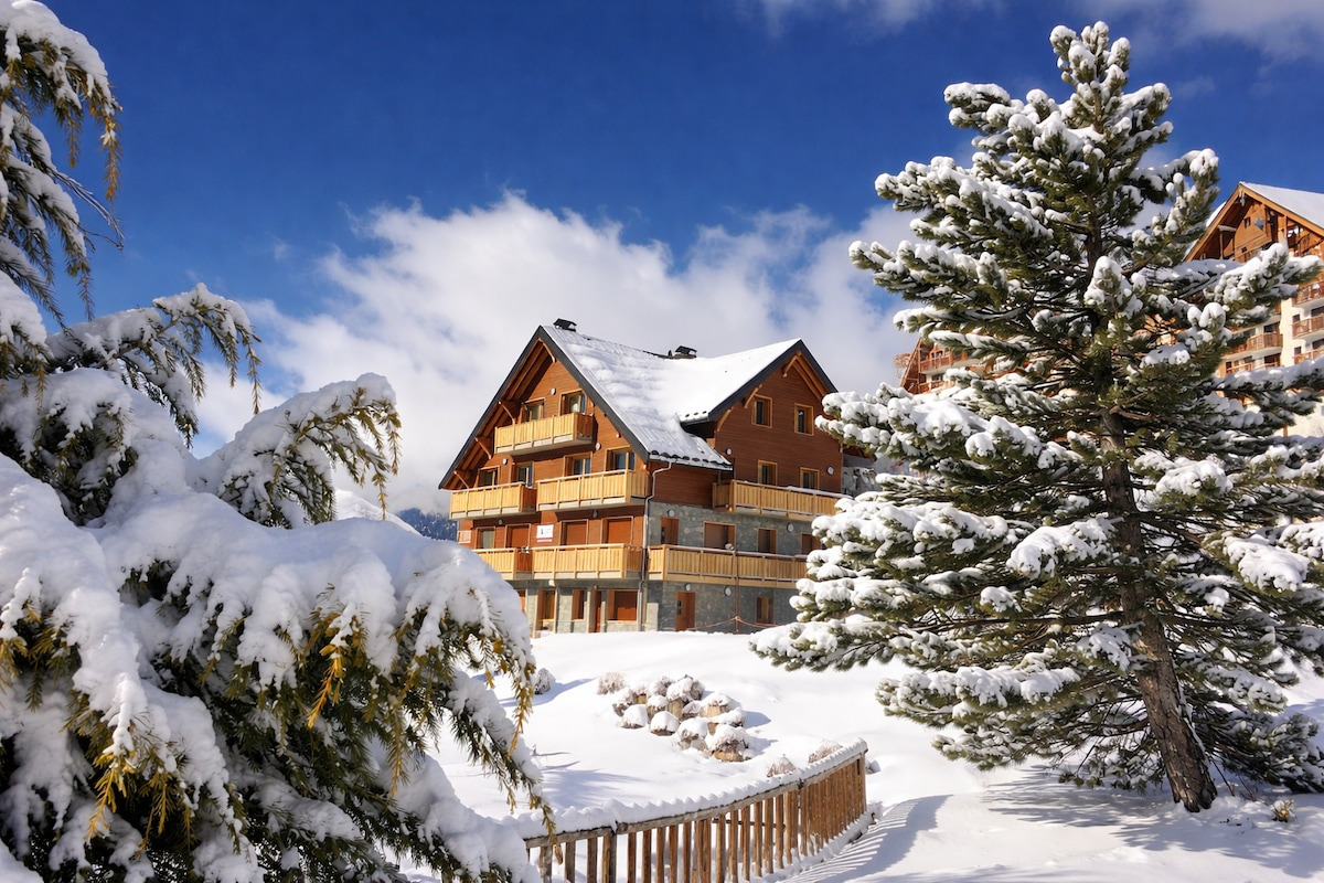 Splendide Duplex alliant charme montagnard et confort pouvant accueillir 6 à 8 personnes!! Très bien situé... à 8mins des remontées mécaniques à pieds ainsi que des commerces... ou à 3mins en navette pour plus de confort (départ et arrivée devant la Résidence). Equipé "comme à la maison" : 2 chambres (6 couchages) 1 canapé convertible dans le salon, 2 SDD, 2WC, cuisine tout équipée; poêle à granulés. Vue imprenable plein Sud du balcon sur les pistes et la vallée. Casiers à Skis chauffants 🎿