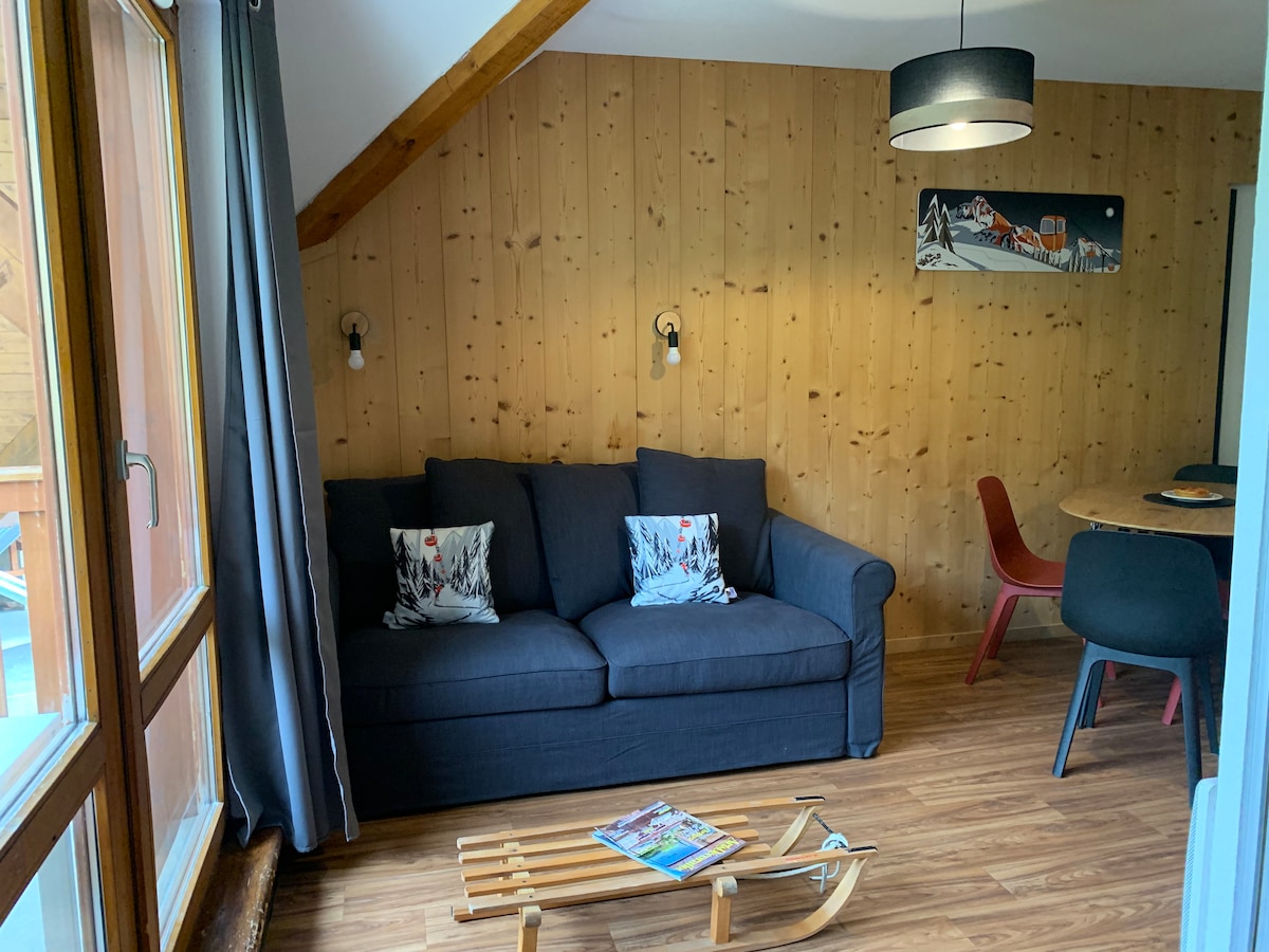 Venez profiter des joies de la montagne dans un appartement entièrement rénové aux pieds des pistes et des commerces. Installez-vous dans le canapé avec vue sur les montagnes pour un moment de repos. L’appartement est spacieux malgré ses 33 m2 et fonctionnel. Tout pour passer un agréable séjour en famille ou entre amis.