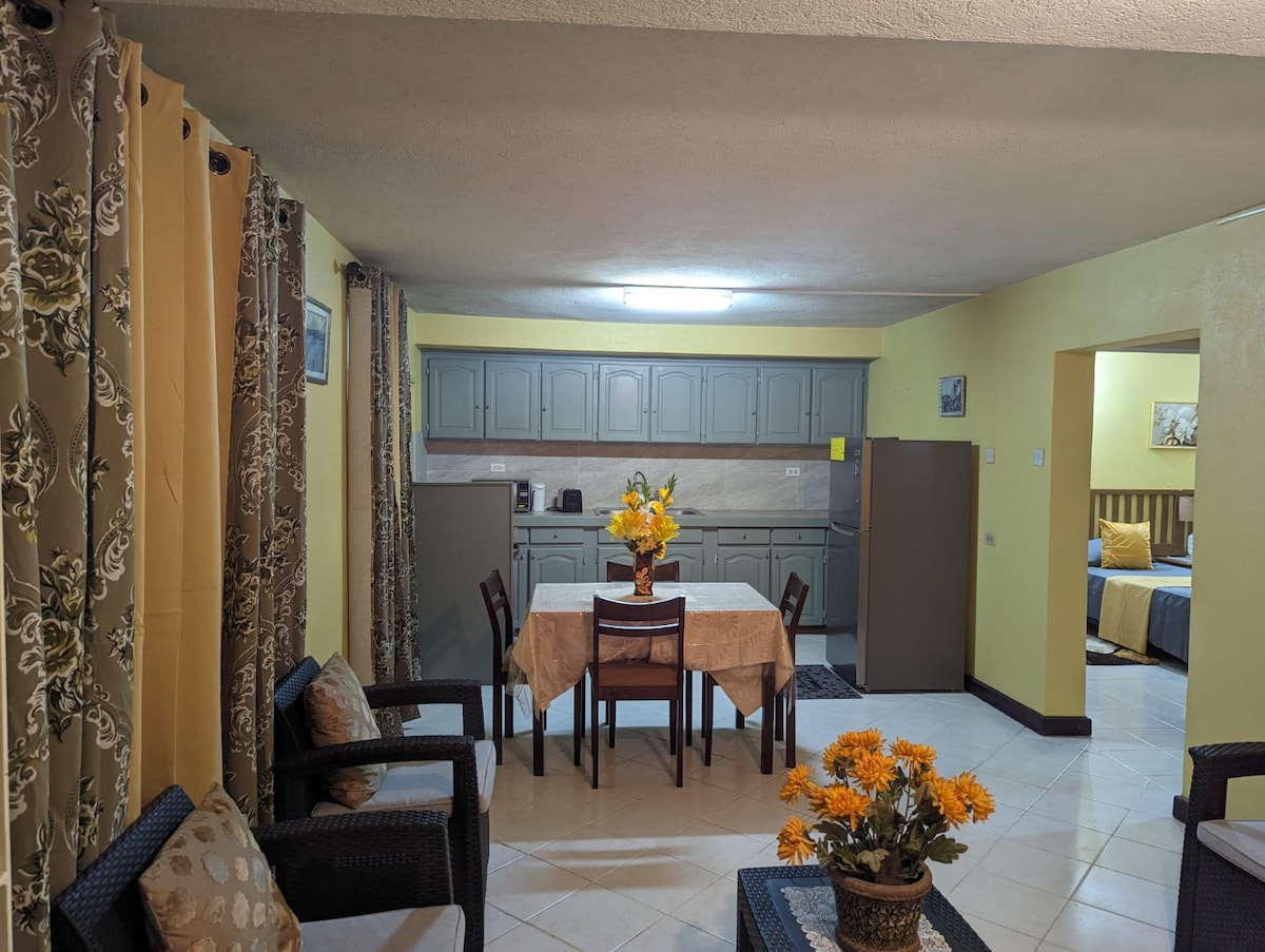 Kick back and relax in this calm, stylish space. 7mins drive from airport, 15 mins drive from US Embassy or Bridgetown. 15mins drive to local beach access. Full living amenities. Suitable for couple with 1 child. Washer available on site. Come relax in a peaceful, quiet and private neighborhood.