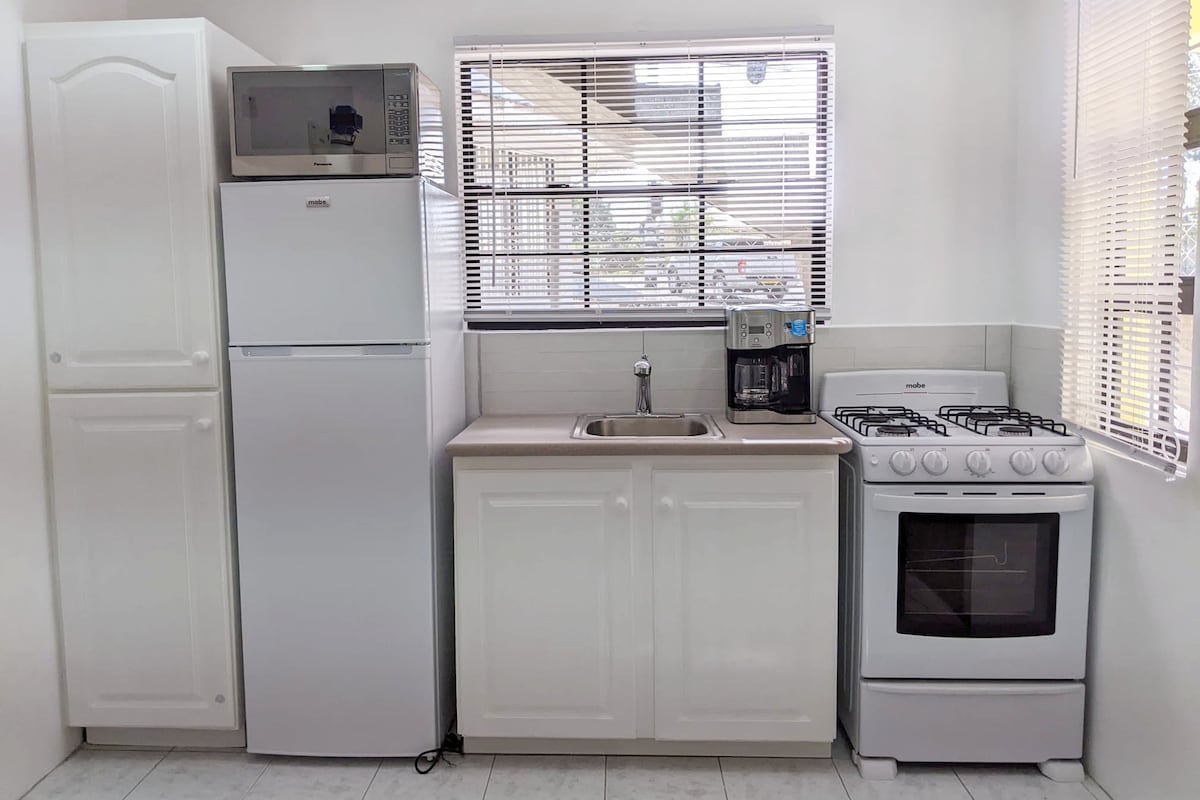 Modern Studio apartment has local amenities at your doorstep and new windows installed. This studio unit is offered at a competitive rate for a great location. Pandy Beach across the street, a 10mins walk to the major grocery store, a 10-minute bus ride to Grand Anse Beach & 3 min walk to Port Louis marina. Note: New windows as of April 2024 to reduce street noise