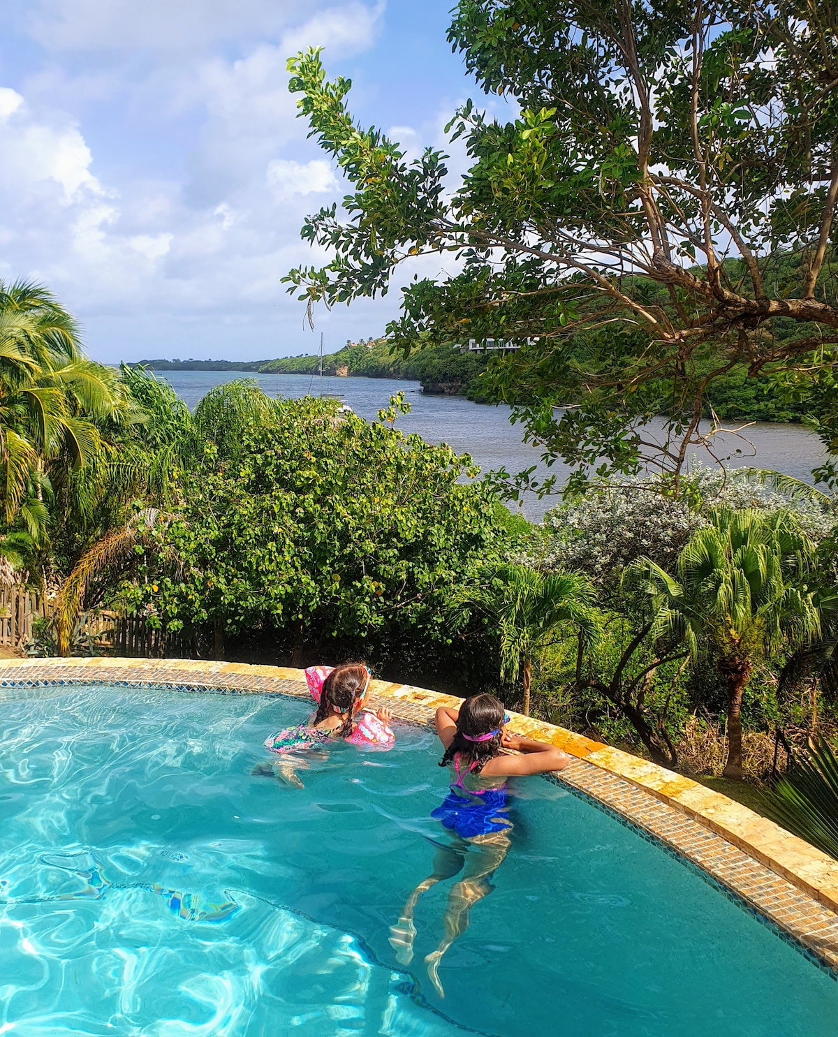 Tradewind Pavilion at Reef View Pavilions is a Spanish style, 3 bedroom/4 bath private villa with a sparkling blue swimming pool. Amenities include: kitchen/living/dining areas, breezy verandahs, air conditioned bedrooms and a large outdoor inspired bathroom with a tub and shower area accented with sea coral and ancient fossilized squid.. Guests will enjoy the colorful scenery as well as a natural connection to the Caribbean environment on the rooftop pavilion!