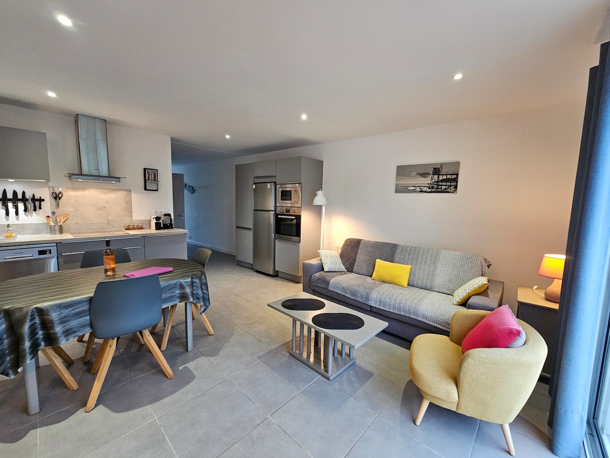 Appartement spacieux et lumineux ( 2 étoiles) avec au choix une chambre lit jumeaux ou chambre avec un grand lit un balcon pour profiter de vos apéros au coucher du soleil, un environnement des plus pratiques avec de nombreux commerces essentiels ( supermarché, tabac-presse , médecins, pharmacie, location de vélos, restaurants à proximité ) et un marché typique où vous pouvez vous rendre à pieds , trois restaurants , ainsi qu'un parking privé et clos pour votre tranquillité .