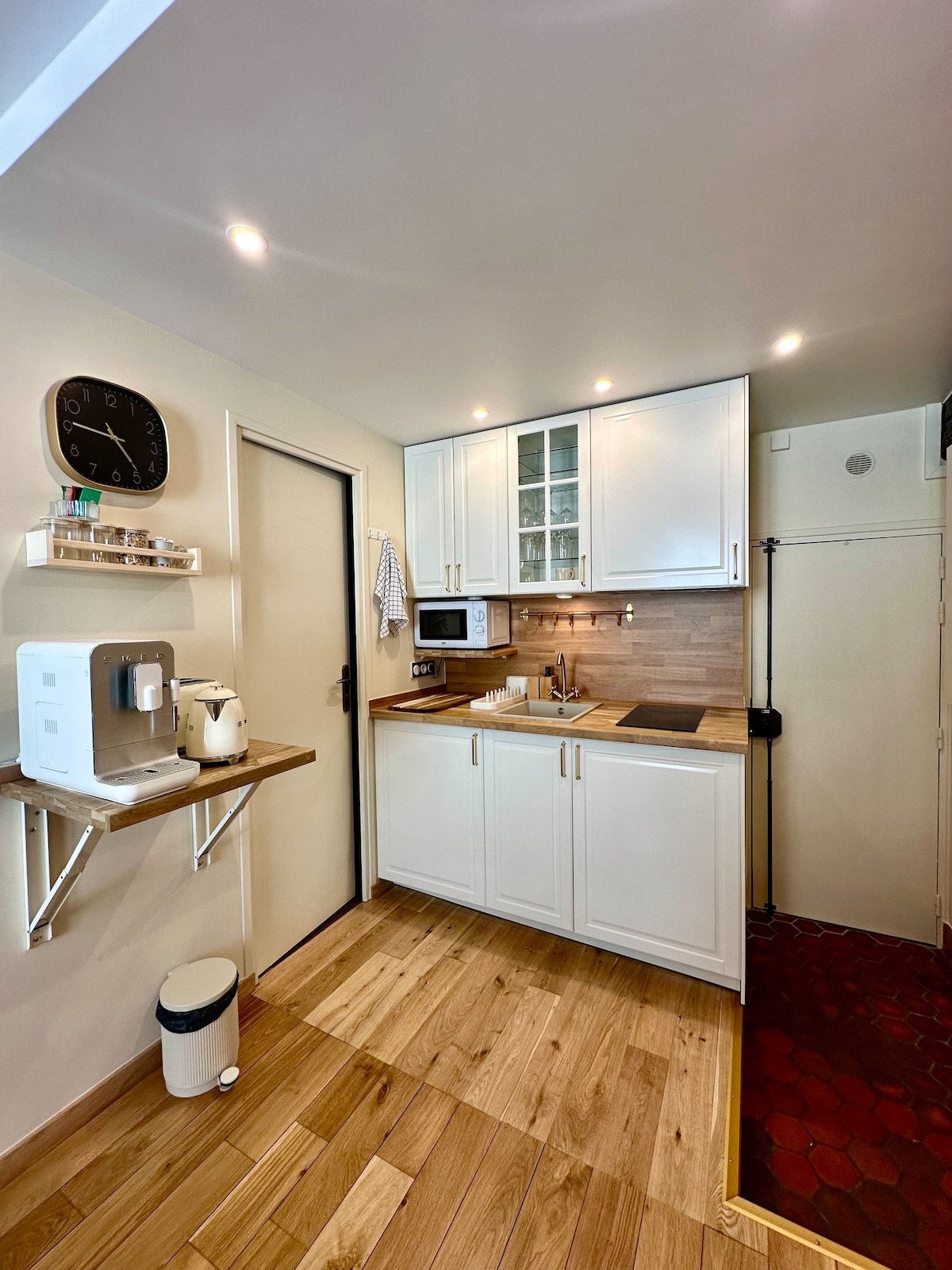 Live Like a Parisian in Saint-Germain-des-Prés! Welcome to your cozy and elegant studio in the heart of Paris 6ème, just steps from cafés, wine bars, boutiques and a authentic French crêperie. You can enjoy the city's most iconic landmarks by walk. Inside, enjoy all the comforts you need: -A fully equipped kitchen -Flat-screen TV -A beautiful modern bathroom -A comfortable sofa bed and a fold-out armchair -And a glowing electric fireplace Please note: it’s 4th floor without elevator
