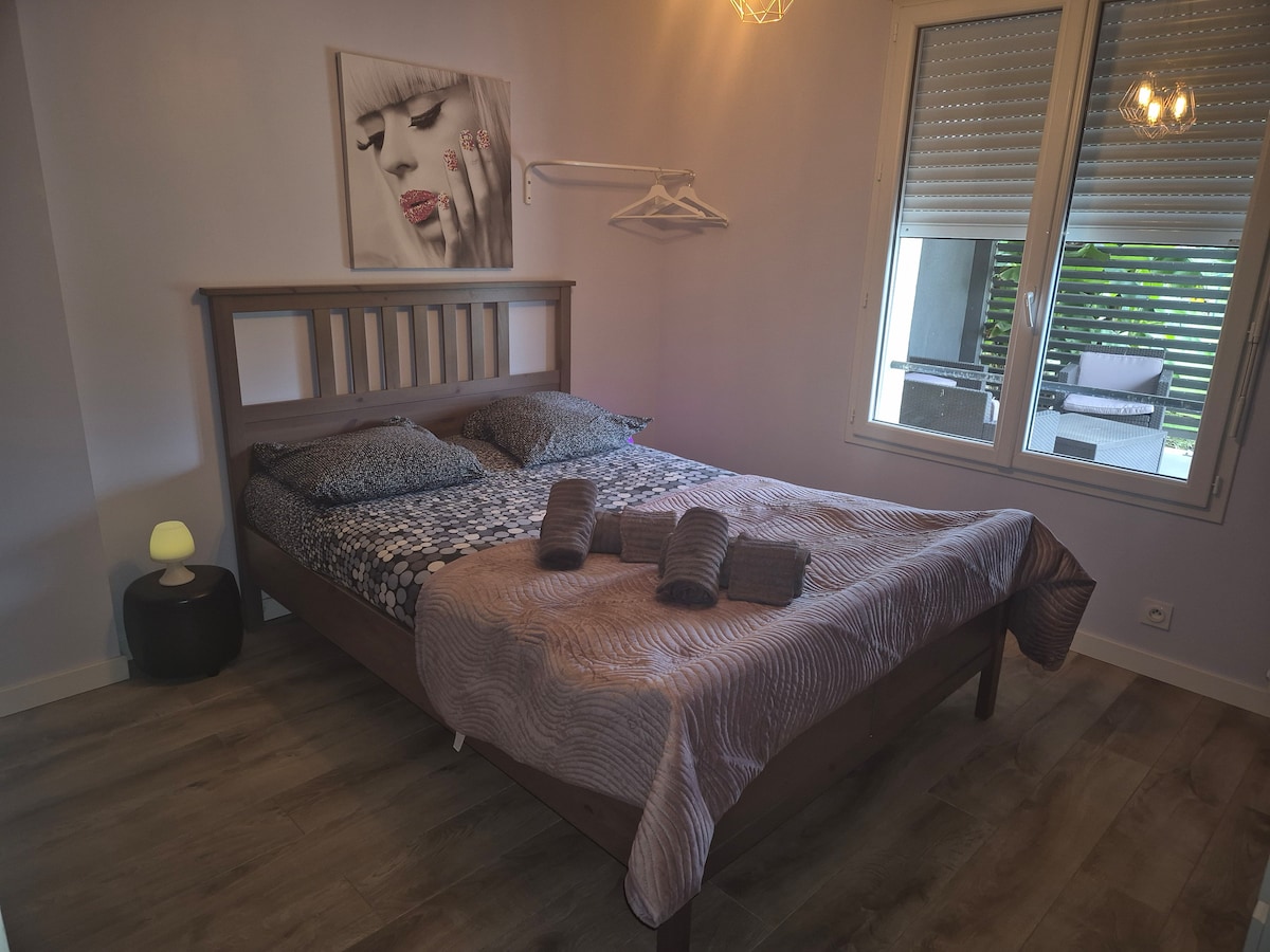 Logement de 35m² en plein centre, proche de la boulangerie et de tous les petits commerces utiles à votre séjour (librairie, bureau de tabac, restaurants, coiffeur ...). Supermarchés, station essence et borne de recharge se trouvent à 400m. Vous pourrez également sortir autour de l'étang, du parc et au cinéma. Ce studio chaleureux est équipé d'une cuisine aménagée, d'un salon avec TV (Netflix), d'un coin bureau avec wifi, d’un lit confortable, d’une salle d’eau avec WC séparés.