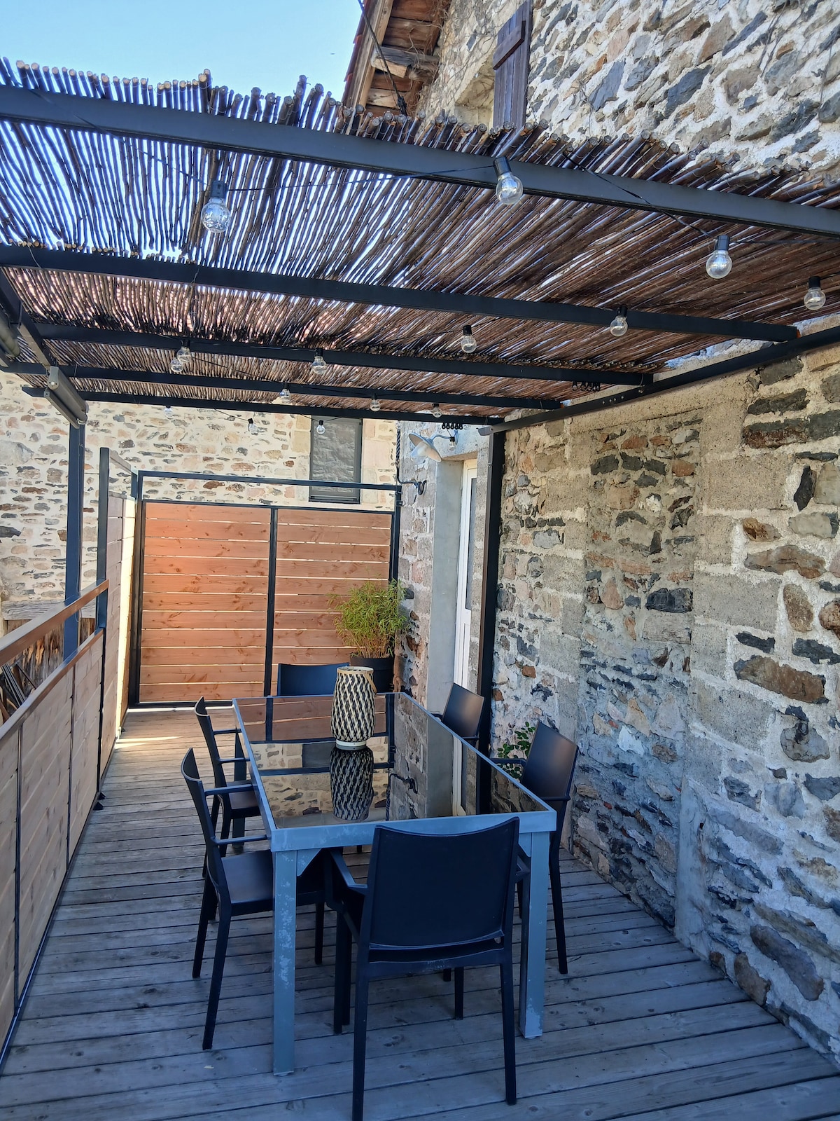 Meublé de tourisme **** Niché dans un environnement reposant et préservé, sans aucun vis à vis, le gite Le Balcon de la Mejeanne vous propose une expérience unique mêlant grand confort et nature. Le logement de 170m² est implanté sur un parc de 6000m² clos, comprenant plusieurs terrasses , une terrasse panoramique avec salon de jardin, terrain de pétanque, jacuzzi chauffé au bois, filet suspendu, espace barbecue, terrasse couverte de 80m² sous la maison. Draps 8€/lit Serviettes non fournies