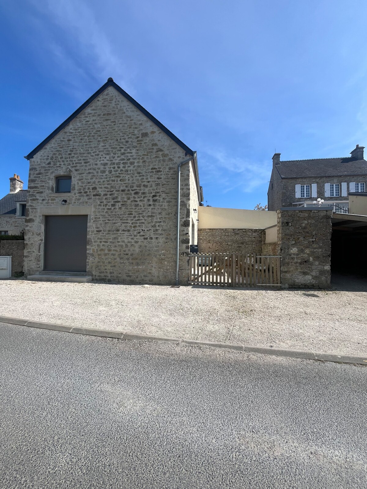 Attenant à la maison principale un logement de plein pied comprenant : un grand salon avec un lit une personne, une chambre avec un lit 140, une cuisine et une salle de bain avec douche et WC. Extérieur : une petite terrasse avec salon de jardin et barbecue. Espace dédié aux véhicules dans la cour intérieure close. La propriété se situe au bout d'un chemin privé. 1km 8 d'Isigny sur mer, tout commerce. 5km de Grandcamp-maisy. Proche des plages du débarquement Omaha beach... De Bayeux à Cherbourg.