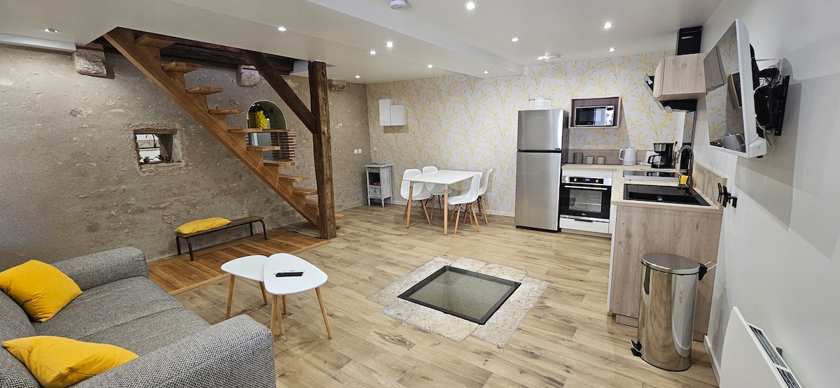 Cet appartement élégant est installé dans un bâtiment du XVe siècle en plein cœur de la ville historique de Blois. Entièrement équipé, avec wifi et TV. l'appartement comprend 1 cuisine, 1 salon avec canapé lit, 1 chambre et 1 salle de bain avec baignoire. Il est situé à 600m de la gare et 100 mètres du château de Blois et de la Loire. Il se trouve également à proximité de restaurants et de boutiques pour vous permettre de profiter au mieux de votre séjour au coeur des châteaux de la Loire.