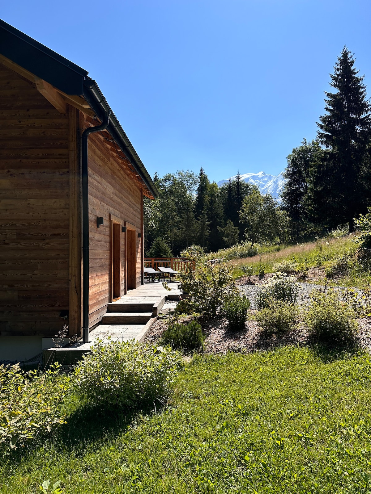 Add logs to a fireplace with a massive stone hearth and recline on a rustic wooden sofa. Gaze through picture windows at the alpine forest surrounding an authentic chalet. Return from the slopes and unwind in a luxury sauna in a cabin-chic bathroom. Une chambre de 25m2 avec lit double, rangements, armoire authentique. Un salon chaleureux et spacieux avec double baies vitrées donnant sur le Mt Blanc et cheminée. Et un sofa banquette convertible en 2 lits individuels. Cuisine pratique et toute équipée. Une salle de bain en granit avec douche et sauna 3 personnes. Une terrasse devant forêt et ruisseau ( avec fréquente visite des biches - voir photos ), avec fontaine et vue imprenable sur le massif du Mt Blanc. The chalet is an individual construction fully available and reserved for the guests. So are the terrace and the surroundings ( a small river, a private bridge and access to the forest ). A disposition pour toute question. Dans le hameau de Coupeau : Chalet authentique dans la forêt au-dessus des Houches avec vue exceptionnelle sur le massif du Mont Blanc. En Bord de petit torrent avec des biches A 5 min en voiture des Houches, à 10 min de Chamonix, à 1h de Genève. Easy access by road to the chalet. 2 kms from Les Houches and 10 kms from Chamonix. Parking just behind the chalet A fully renovated old chalet. With all modern comfort ( inc Sauna for 3 ) and top decoration. A unique view on the MontBlanc chain. The chalet is in the hamlet of Coupeau, in the forest above Les Houches, with exceptional views of Mont Blanc. It's a 5-minute drive to Les Houches, 10 minutes to Chamonix, and an hour to Geneva.