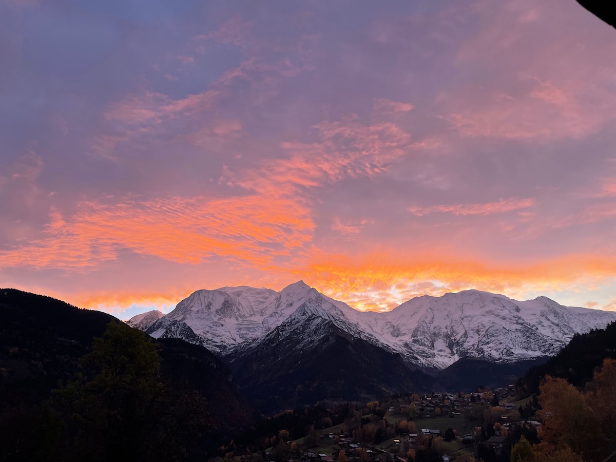迷人的老式木石度假木屋,可欣赏勃朗峰的美景