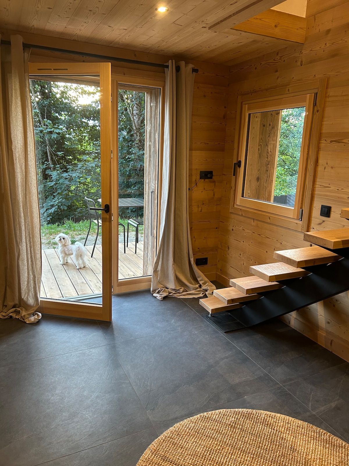 Welcome to our cozy 17sqm cabin in the woods, perfect for your next mountain holiday. With Mont Blanc gracing the horizon, you'll be treated to breathtaking views. Please note that this lovely tiny home is situated away from the town centre. It is about 1 hour on foot, 10 minutes by bus, or 4 mins by car. Also, this is the last year Le Cabin de Cerro will be available to book on Airbnb. April 2026 the cabin will undergo an extension and will no longer be a tiny home.