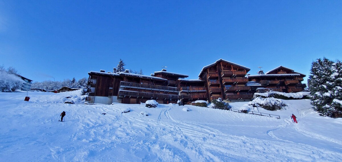 Petit studio cosy et chaleureux entièrement rénové. Nous y avons mis beaucoup de cœur et nous serons ravies de vous accueillir pour que vous passiez un très bon séjour. Il se trouve au bord des pistes, vous pourrez rentrer directement à la résidence en skis ❄️ Il dispose d'une piscine ouverte de juin à septembre ☀️ Jolie vue sur le Mont-Blanc 😎🏔️ N'hésitez pas à nous joindre, nous vous répondrons rapidement et nous ferons en sorte que votre séjour se passe au mieux ☺️