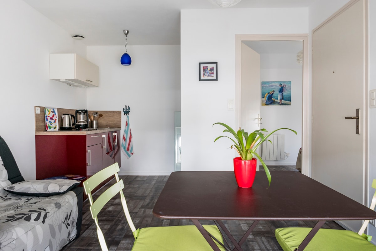 Mon logement est en plein coeur du bourg de Saint-Gildas, proche de l'abbatiale et de la place du marché. Il est situé en haut de mon atelier-galerie d'artiste. Vous apprécierez cet appartement pour son confort, son calme et sa situation. L'appartement est parfait pour les couples et les voyageurs en solo. Les draps et serviettes sont fournis.