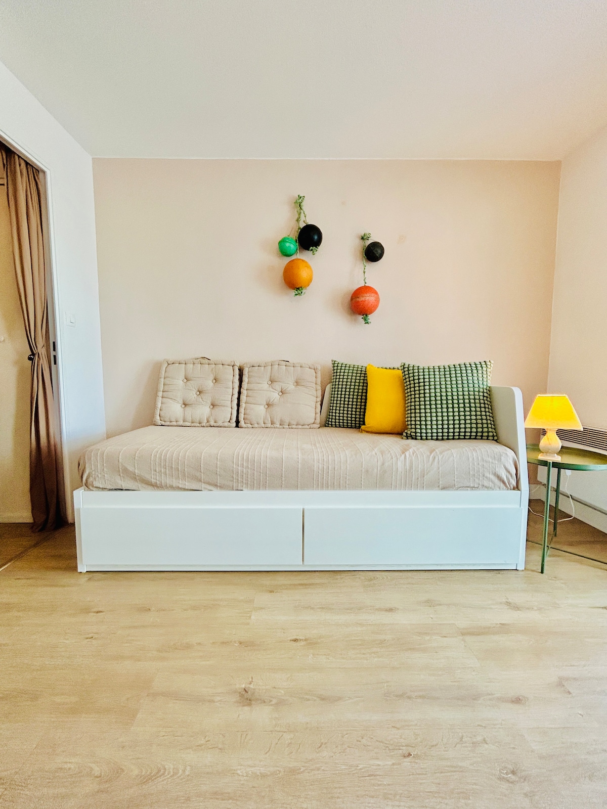 Charmant studio bis de 25 m2 doté d'un balcon très ensoleillé ! Apres de jolies balades sous le soleil vendéen, endormez vous dans un Matelas neuf depuis avril 24, de 160 cm x 200 cm où même La couette est fournie ! Marché Arago, commerces à proximité ( boulangerie, supermarché, banques) et à 9 mn à pied de la plage. Votre voiture pourra rester posée sur l'une des nombreuses places de stationnement gratuites proches de la résidence ,calme garanti ! Local à disposition pour laisser vos vélos .