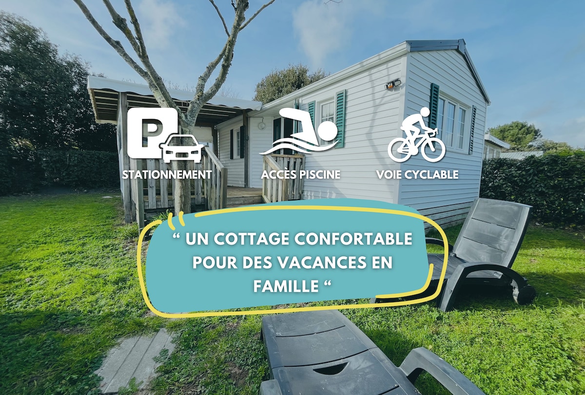 Ce Cottage paisible offre un séjour détente pour toute la famille. A 10 kms des plages et 11 mn des Sables d'Olonne dans un espace verdoyant de 8 hectares donnant sur un étang communal avec jeux pour enfants et ouvert à la pêche. Dans le domaine un restaurant, une piscine extérieure et intérieure, salle de sport, espace détente (spa et sauna), pour plus de précisions contactez l'accueil New Lodge. A 800 m village comprenant centre médical, supermarché, bar tabac, boulangerie...